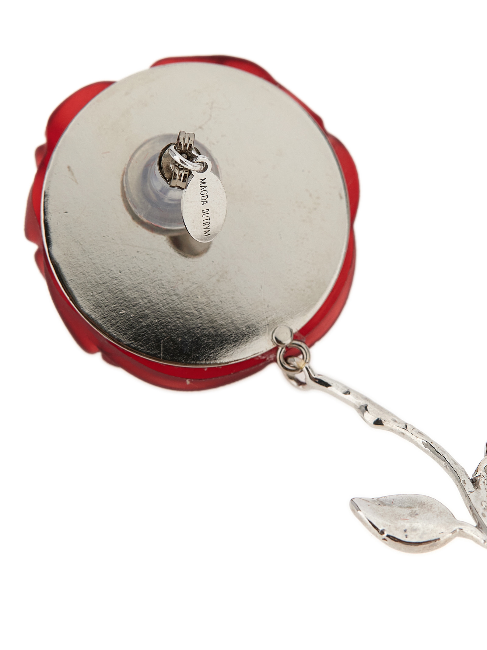 Rose-shaped resin 09 earrings with metal stem and final pearl, butterfly closure.