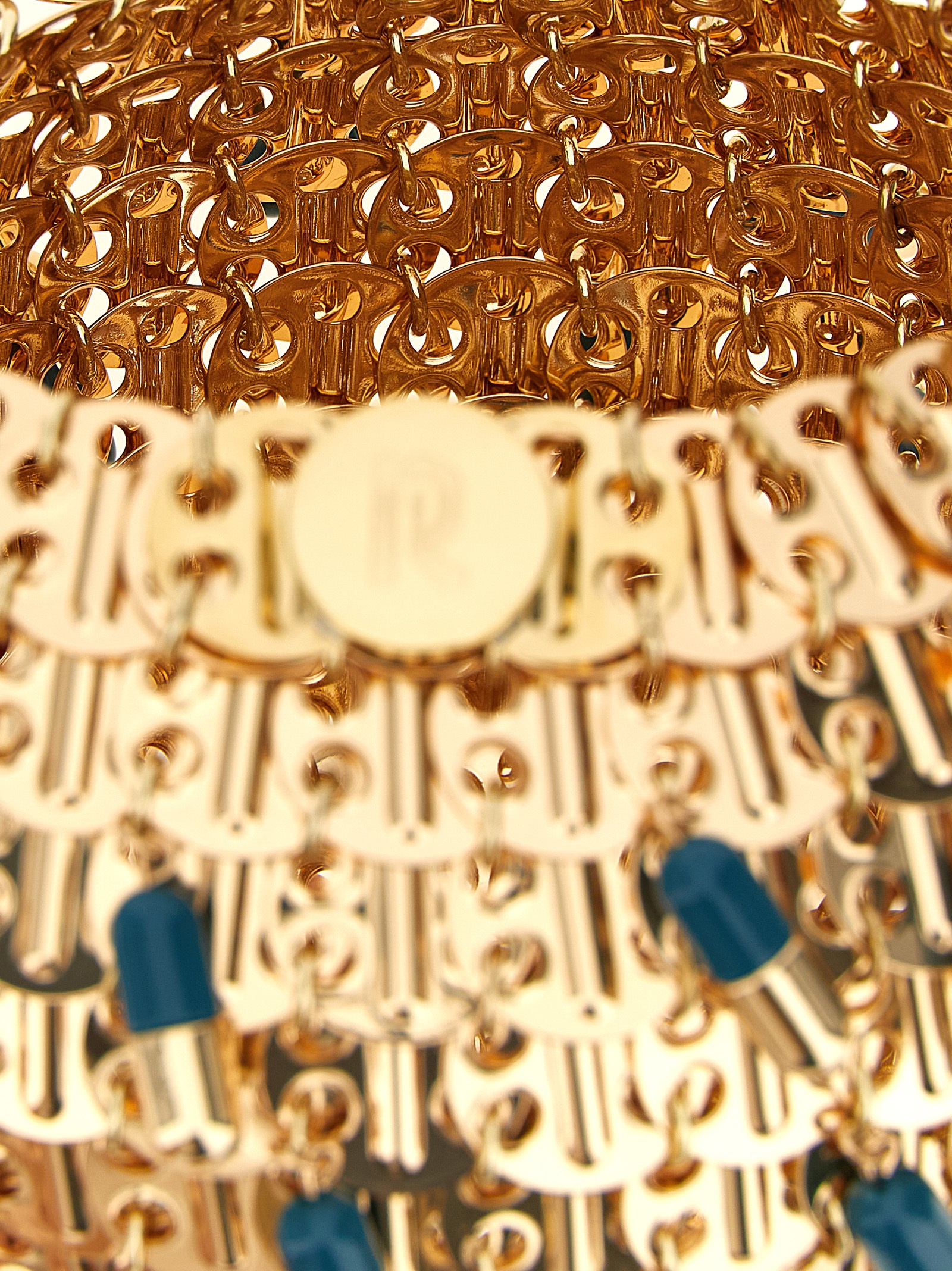 ‘1969 Ball Pils’ metallic knit handbag with pendant charms, top shell with magnetic closure, removable chain handle.