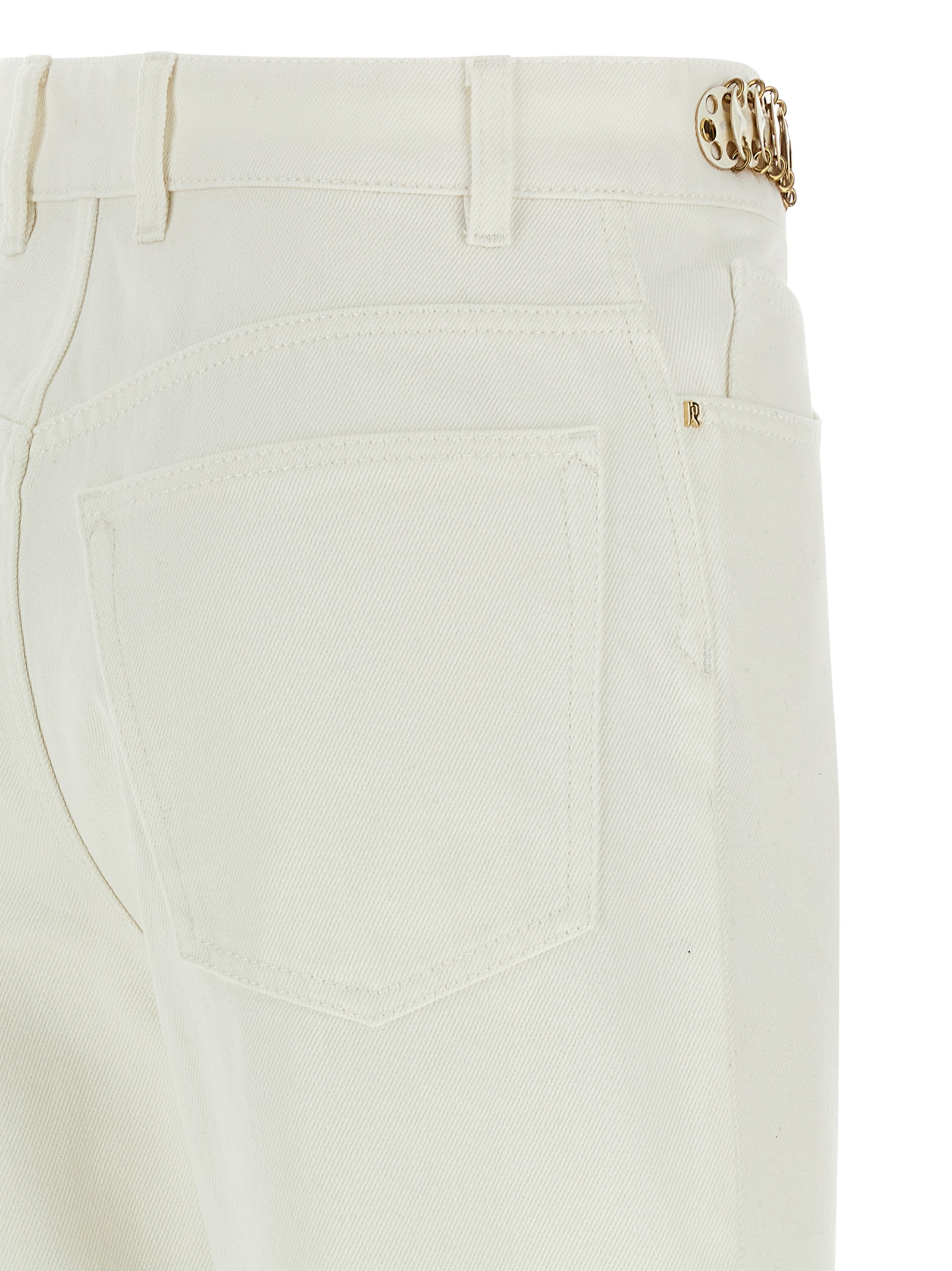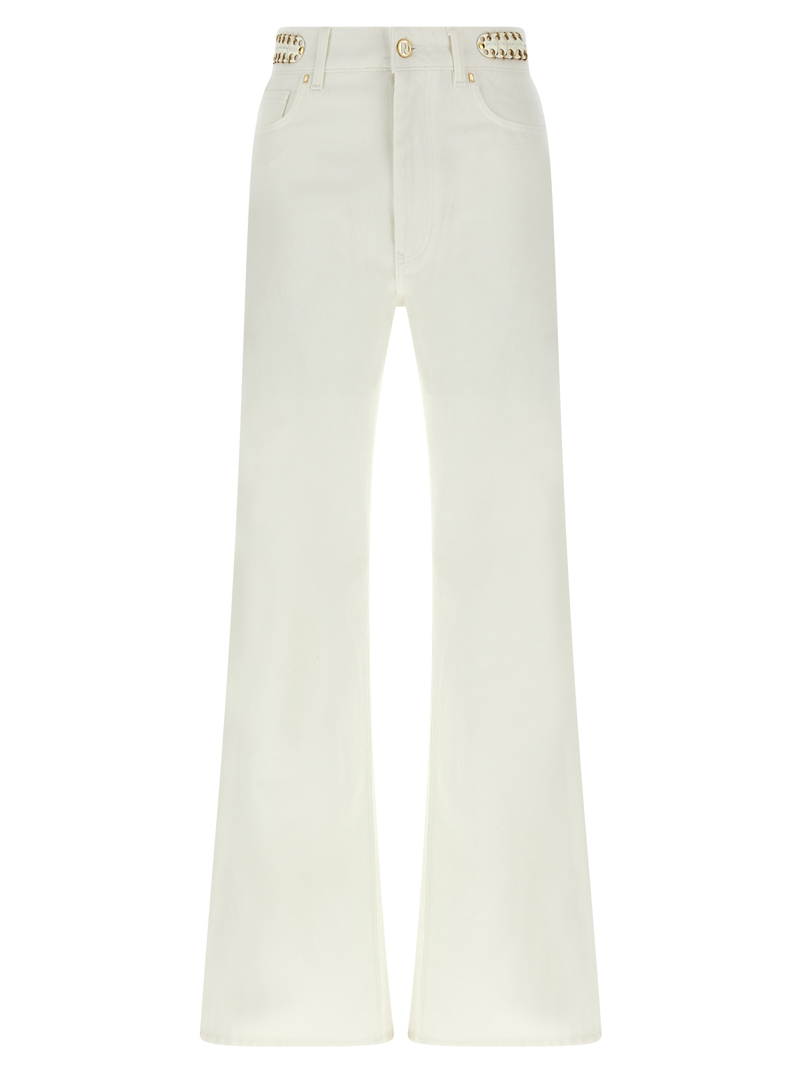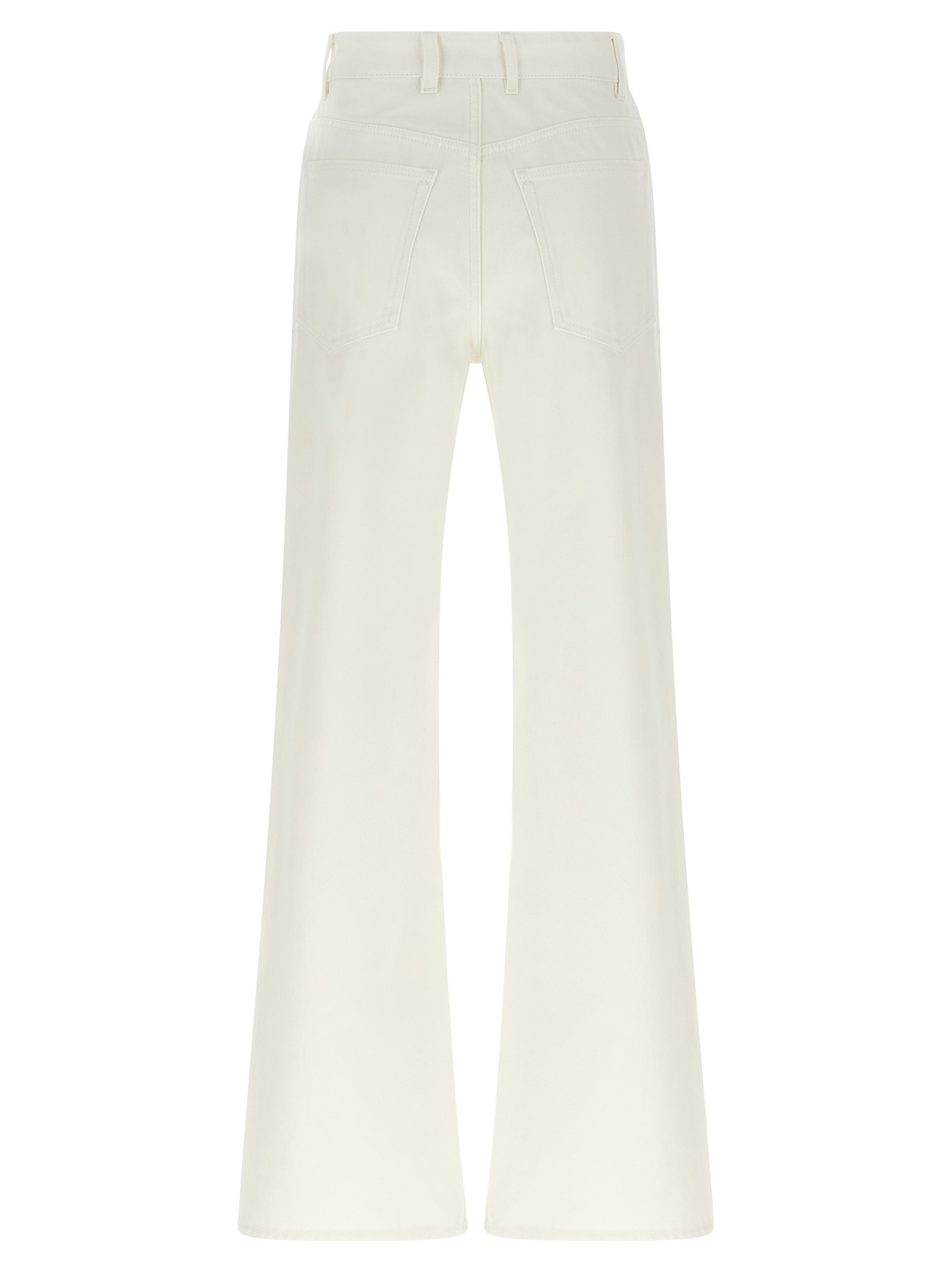 Cotton denim ‘1969’ jeans with enameled metal pads at the waist on the sides, flared leg, five pockets, zip and button closure.