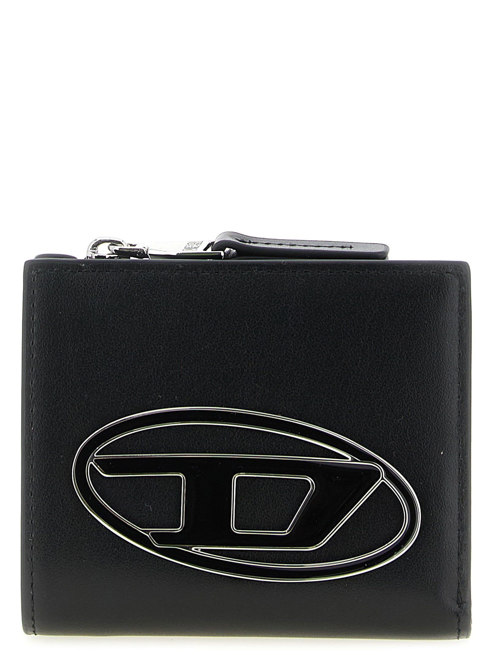Bi Fold ‘1dr Bi Fold Zip L’ smooth leather wallet, flap closure with snap button and Oval D plate in tone-on-tone enameled metal on the front, back zip pocket