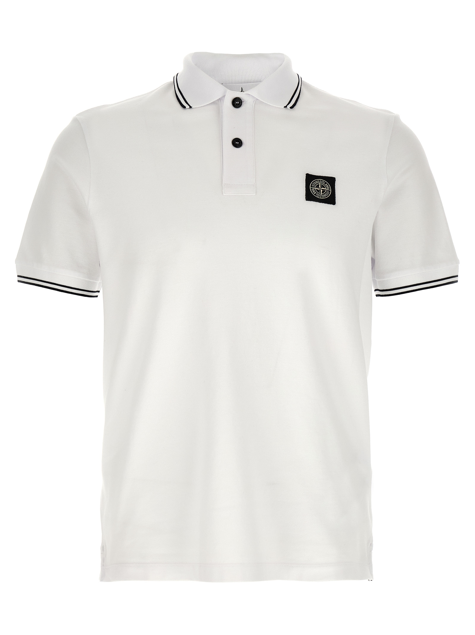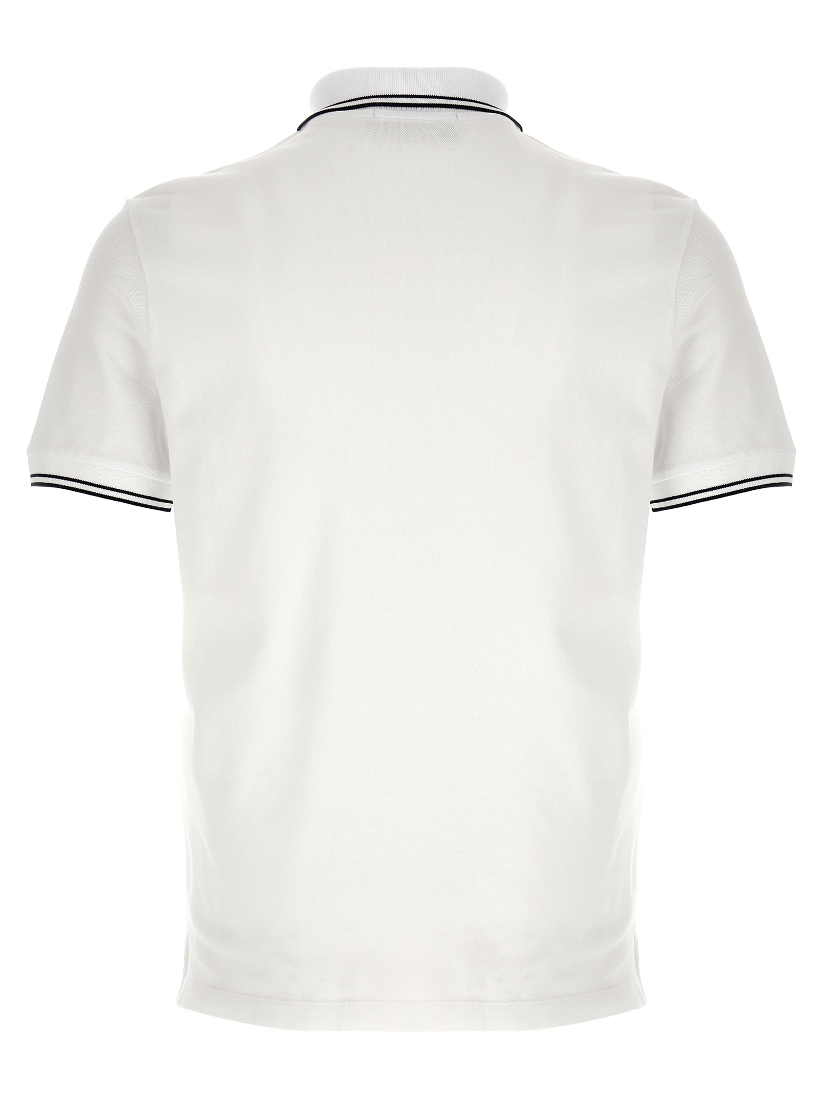 ‘2200010’ cotton piqué polo shirt with contrast details, front ‘Compass’ logo patch, collar and buttons, short cuffed sleeves, side slits.
