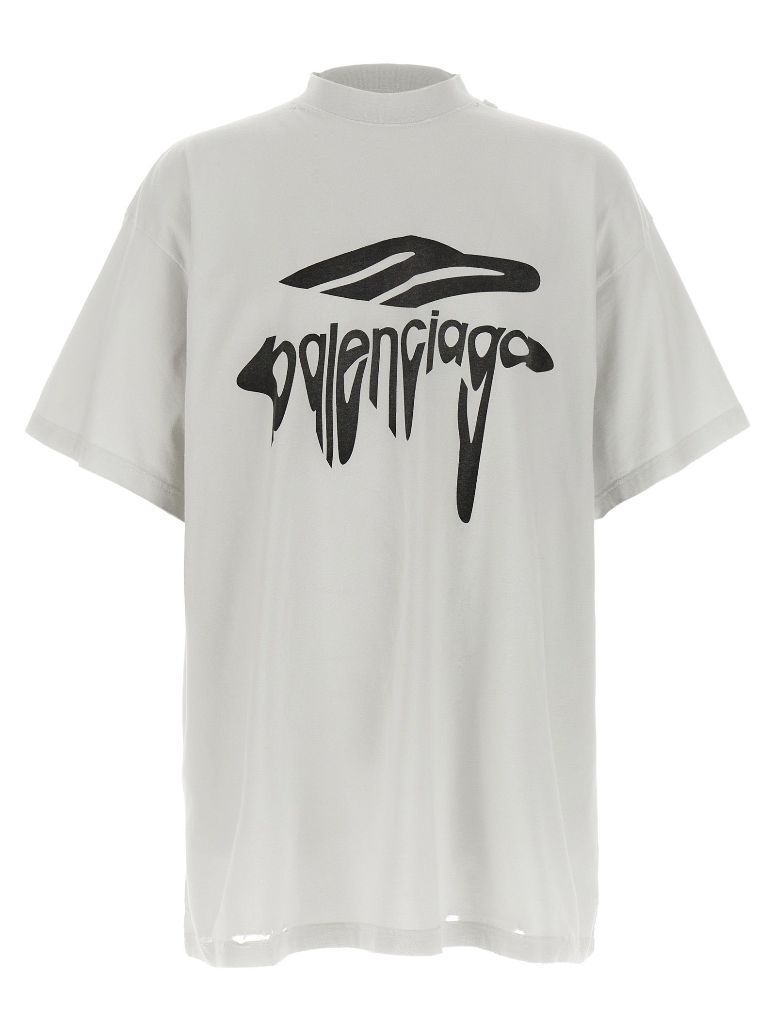 Vintage cotton jersey T-shirt with used effect rips, front ‘3B Liquefied’ print, crew neck, short sleeves.