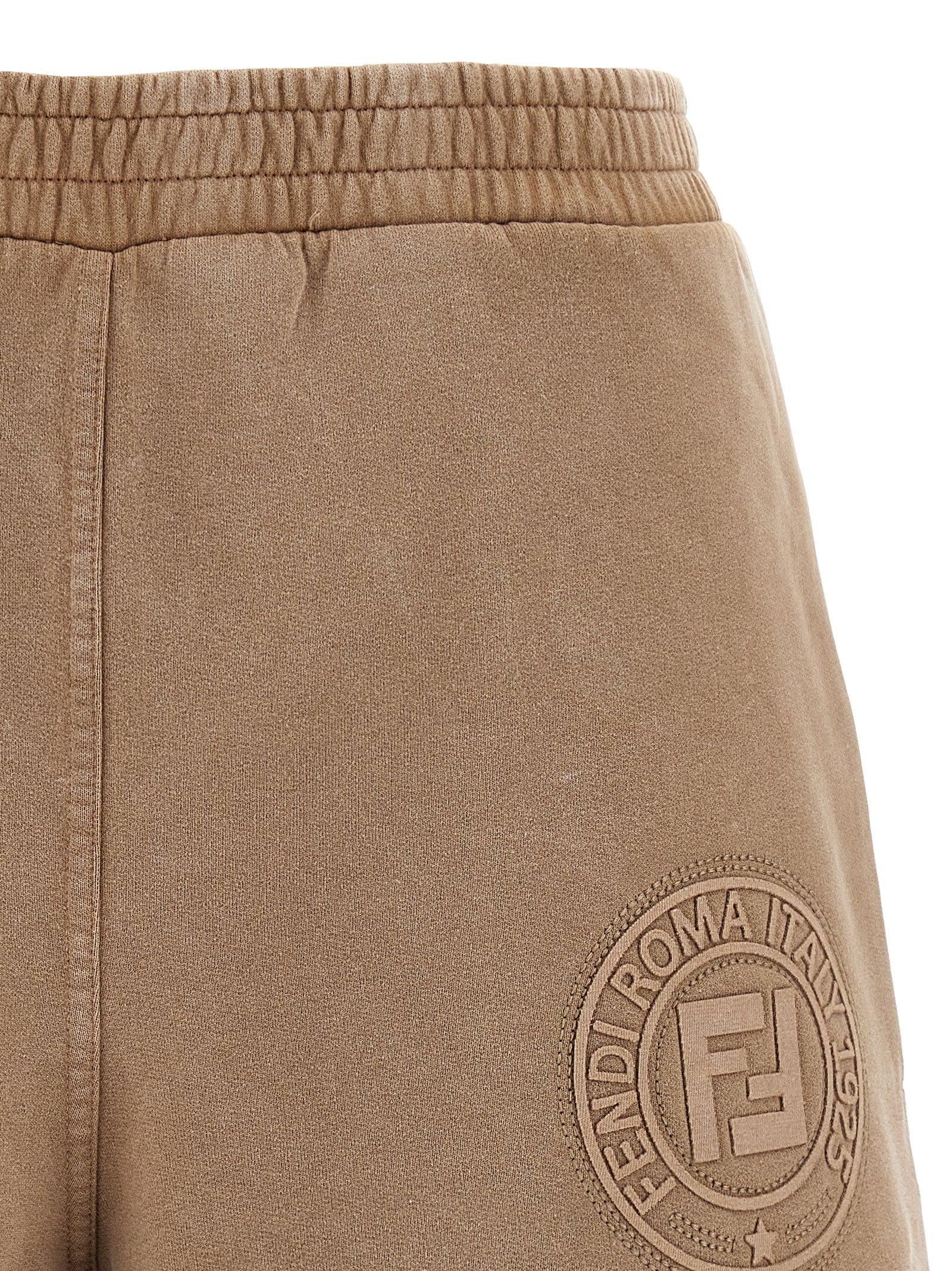 Vintage effect cotton shorts, 3D ‘Fendi Roma’ embroidery on the front, elastic waistband, pockets.