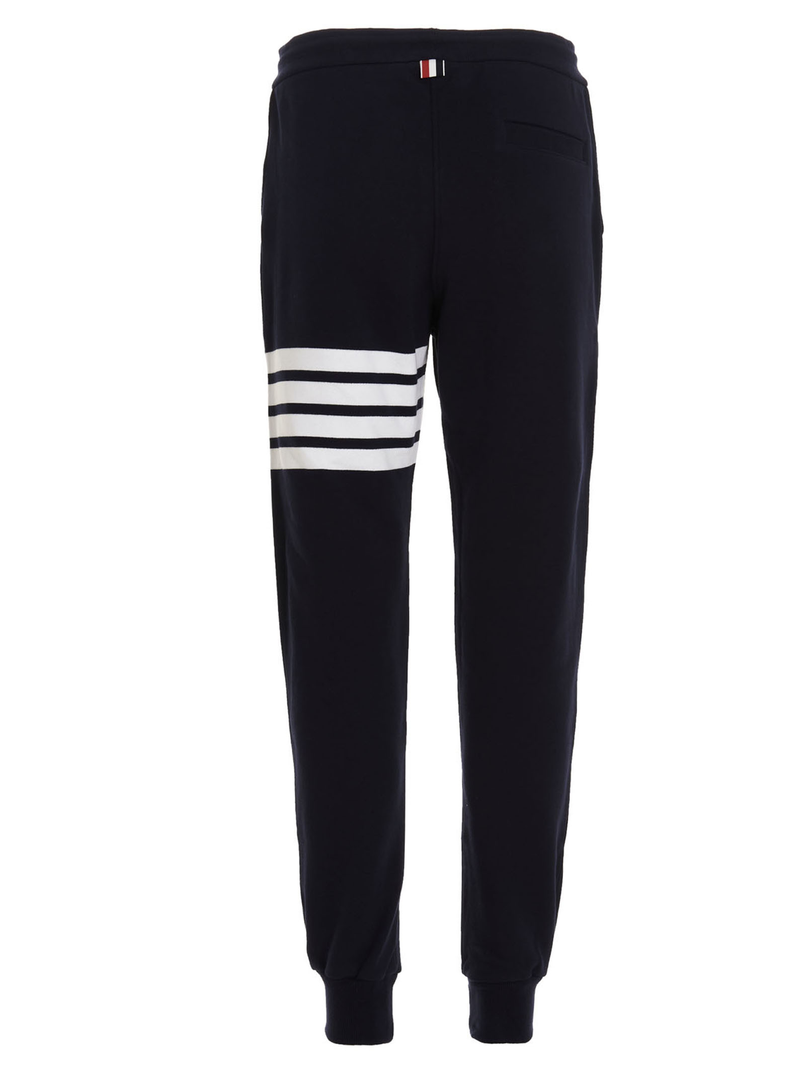 ‘4 bar’ cotton joggers featuring an elasticated waist with a drawstring, contrasting bands and cuffed leg bottoms.