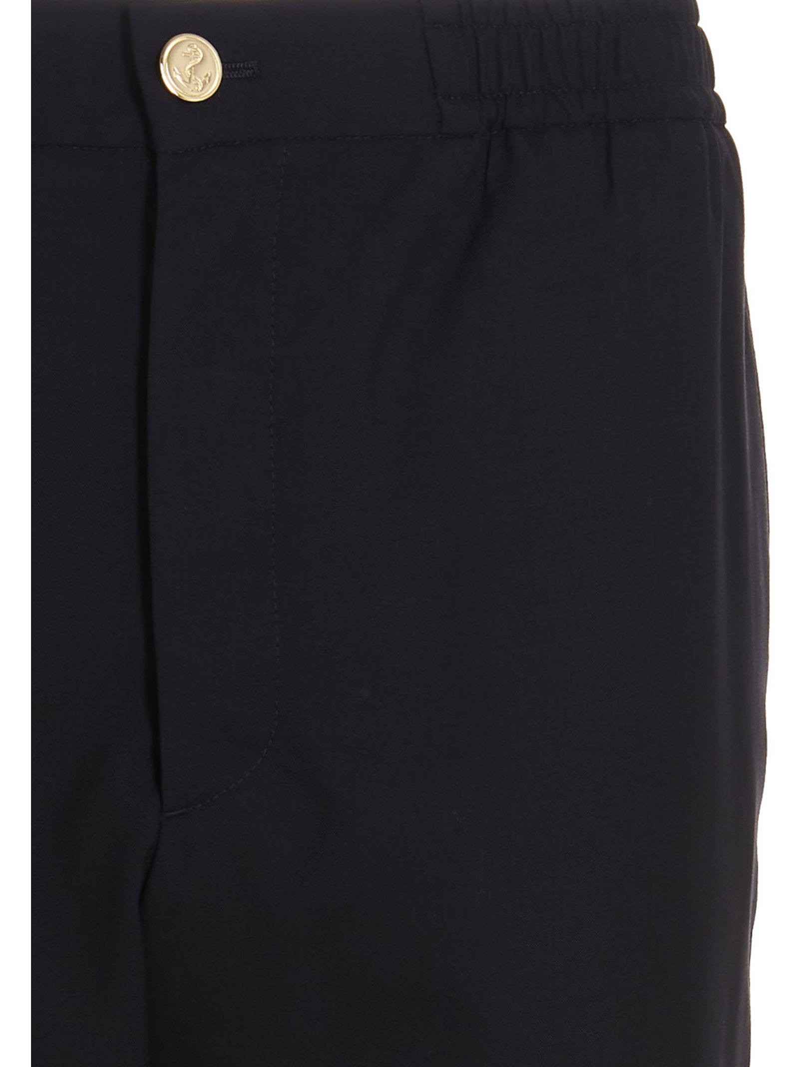 Wool trousers featuring ‘4 Bar’ detailing on the leg, a button closure, an elastic waistband, pockets and an ankle drawstring.