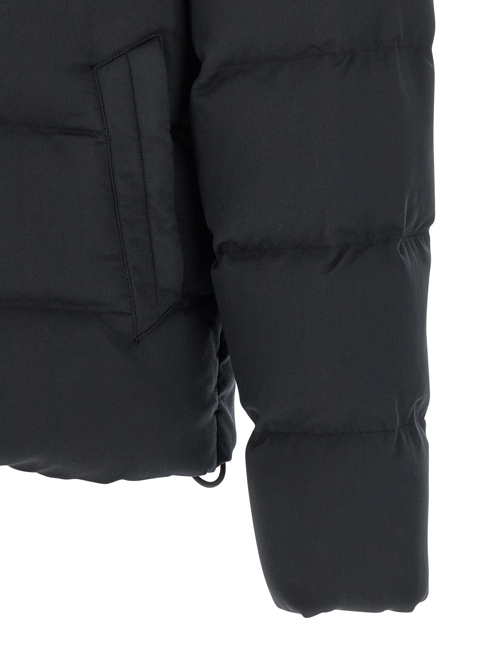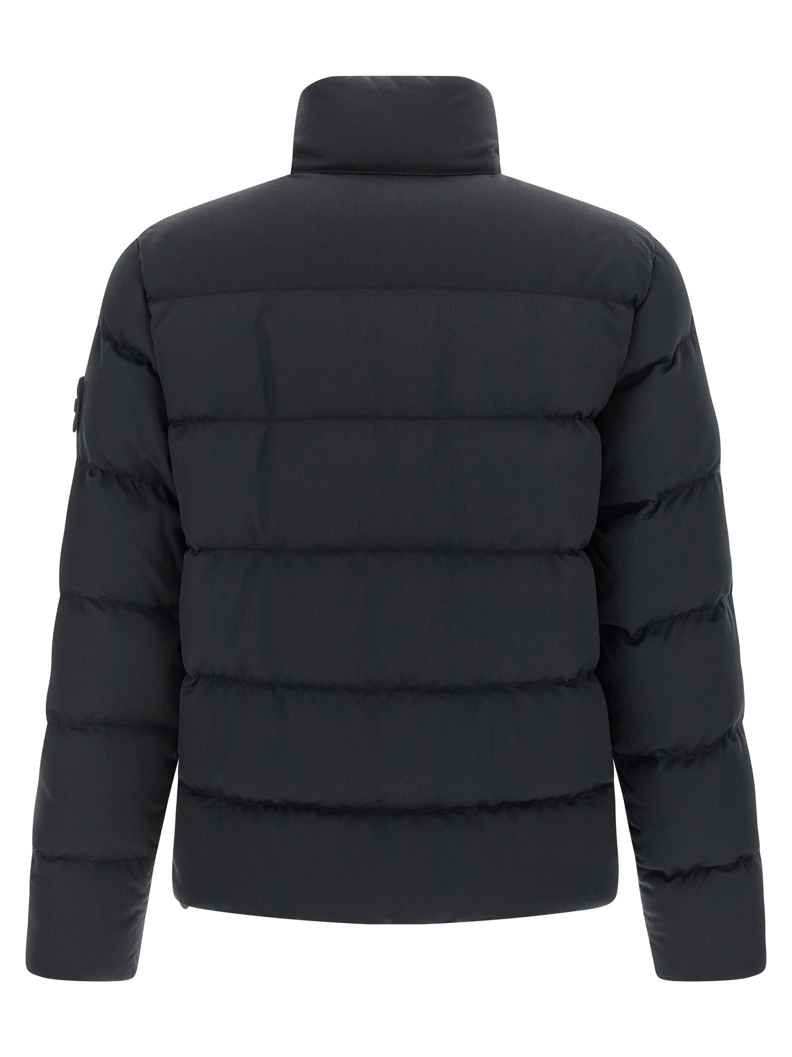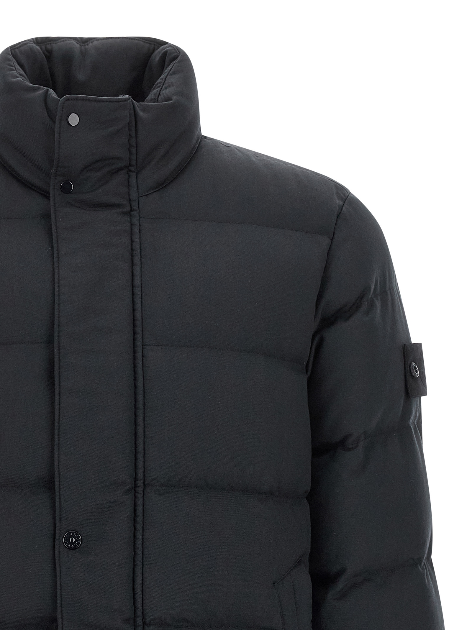 ‘4100100 Twill Wool-Tc Ghost Piece’ down jacket in fine combed Merino wool twill garment-dyed with anti-drip treatment, quilted and goose down padding, standing collar, zip closure and front snap buttons, pockets, long sleeves with stretch ribbed knit cuffs and ‘Stone Island Ghost badge’ tone on tone applied, drawstring on the bottom of the head.