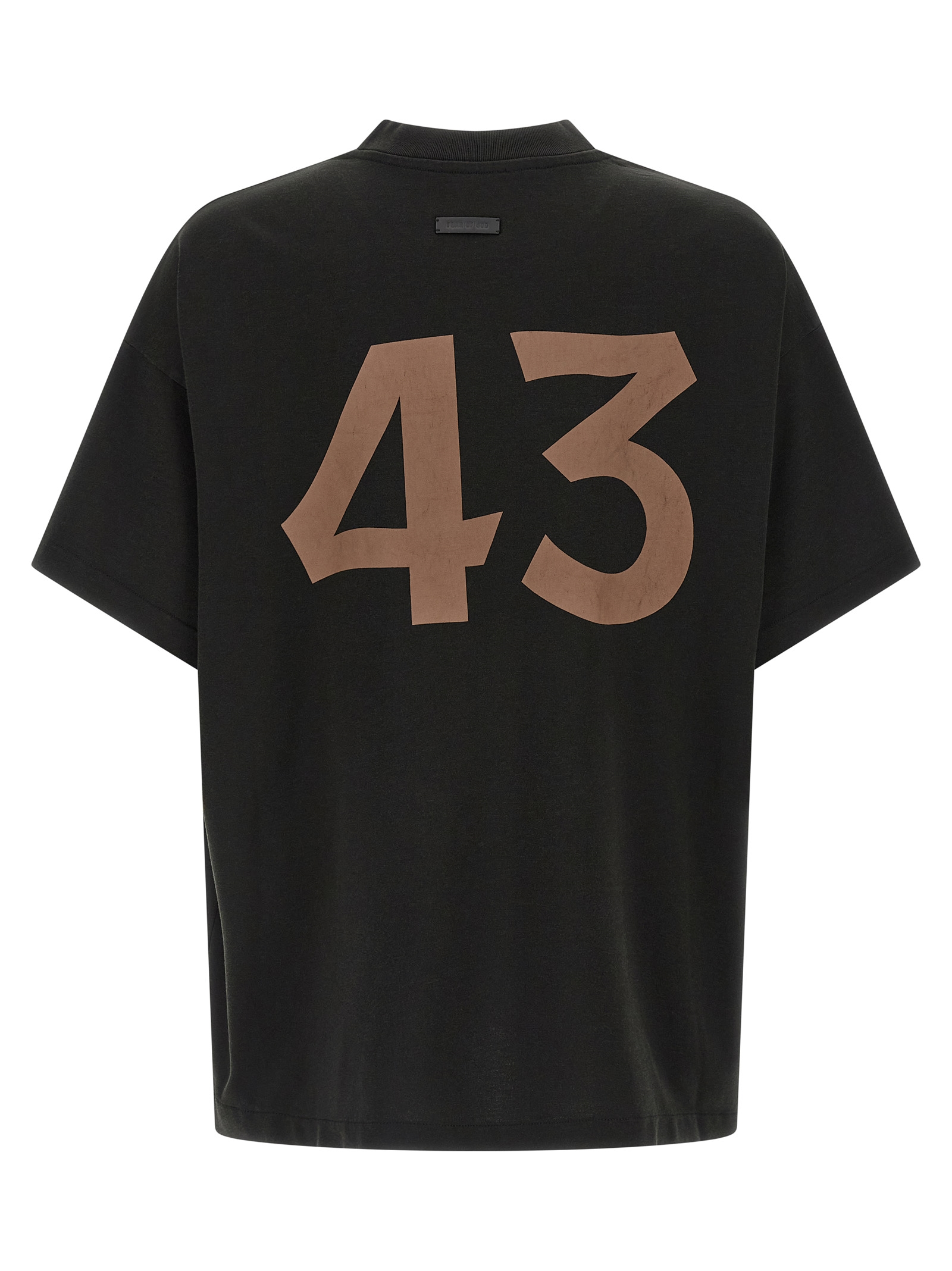 ’43’ cotton and viscose blend rayon t-shirt with front and back print, crew neck, short sleeves with dropped shoulders, leather patch with embossed logo on the back.