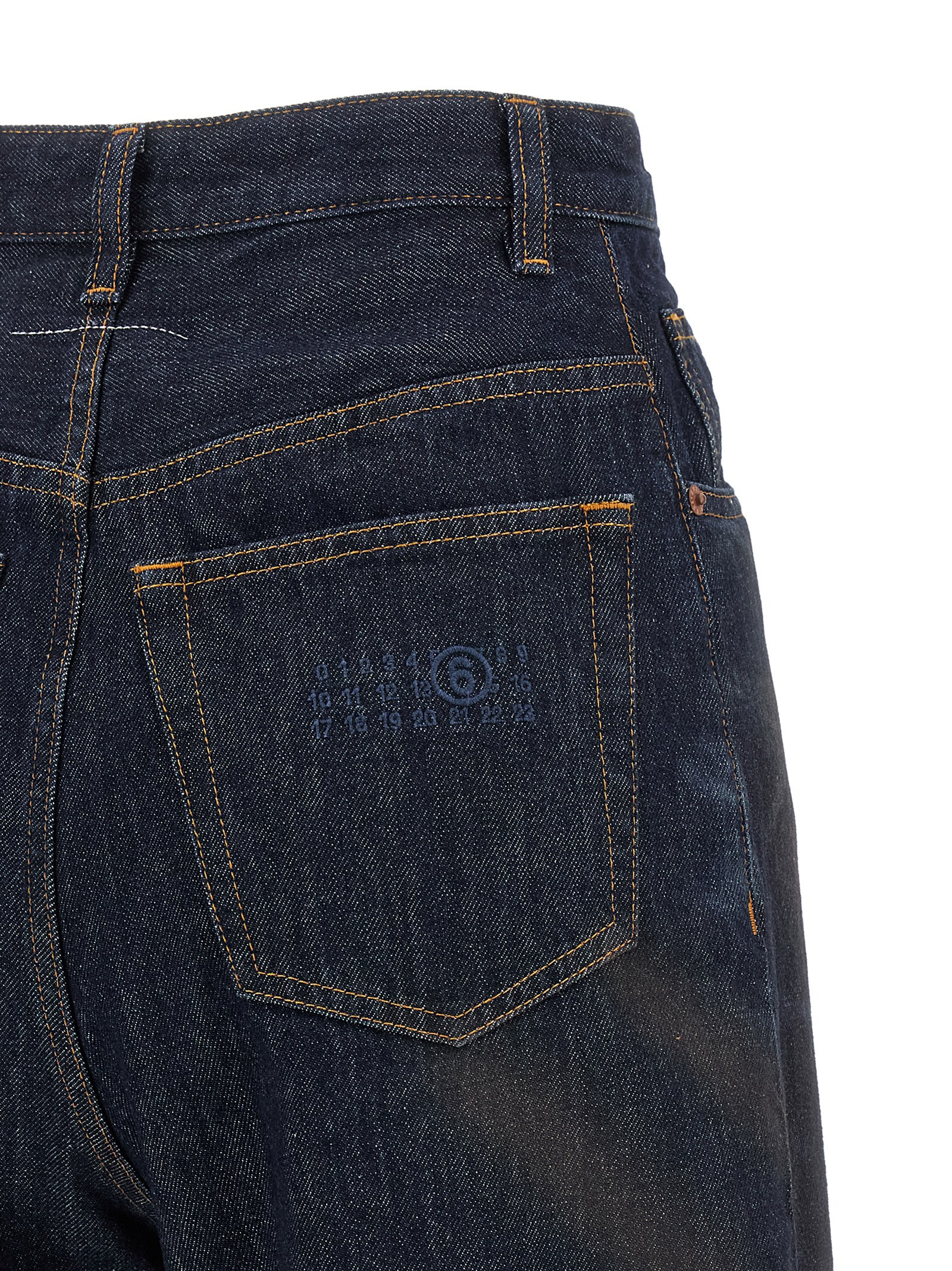 5-pocket jeans in cotton denim with used effect wash, high waist, front zip and button closure, wide and straight leg style with knee pin tucks, contrast stitching.