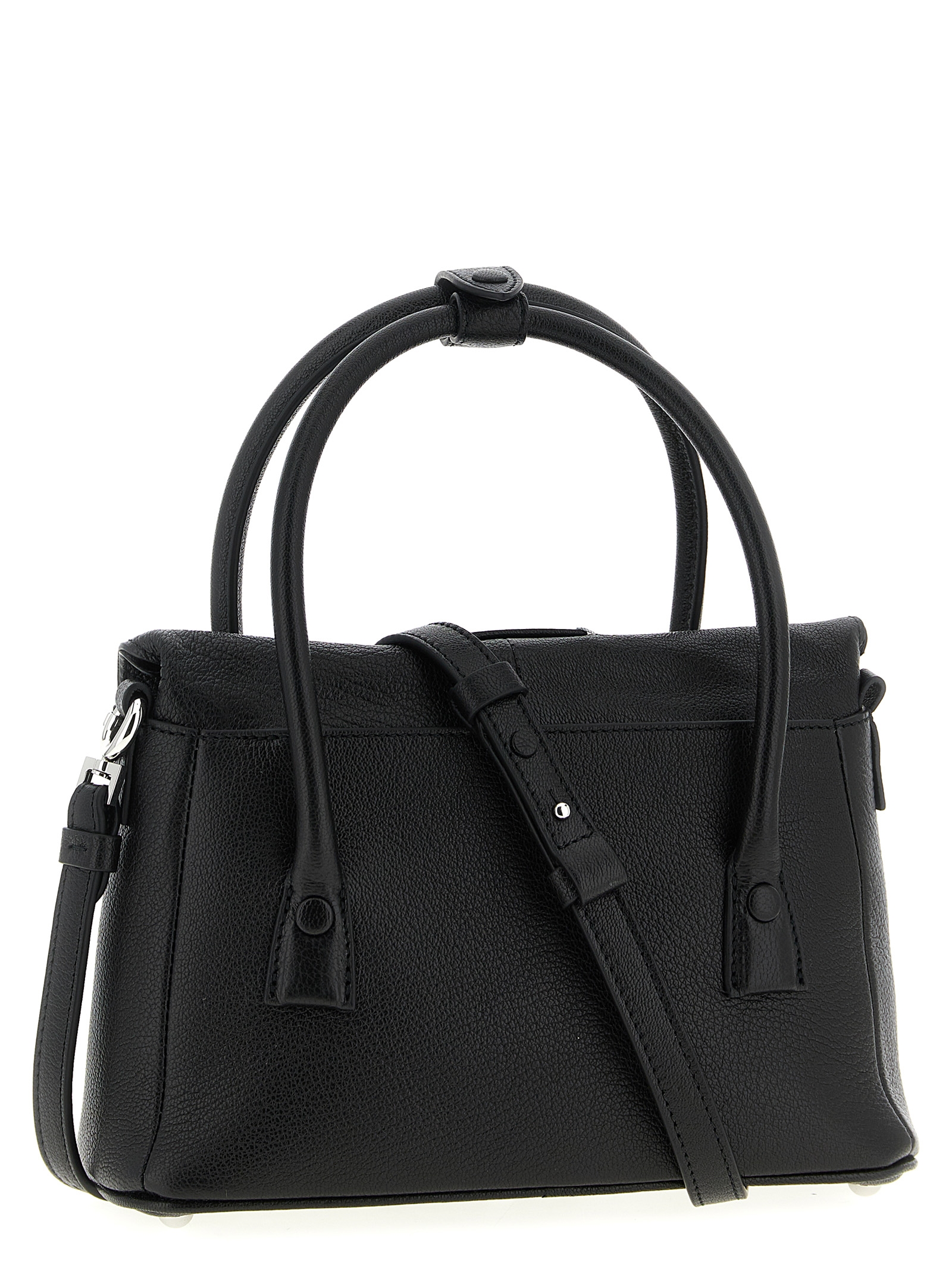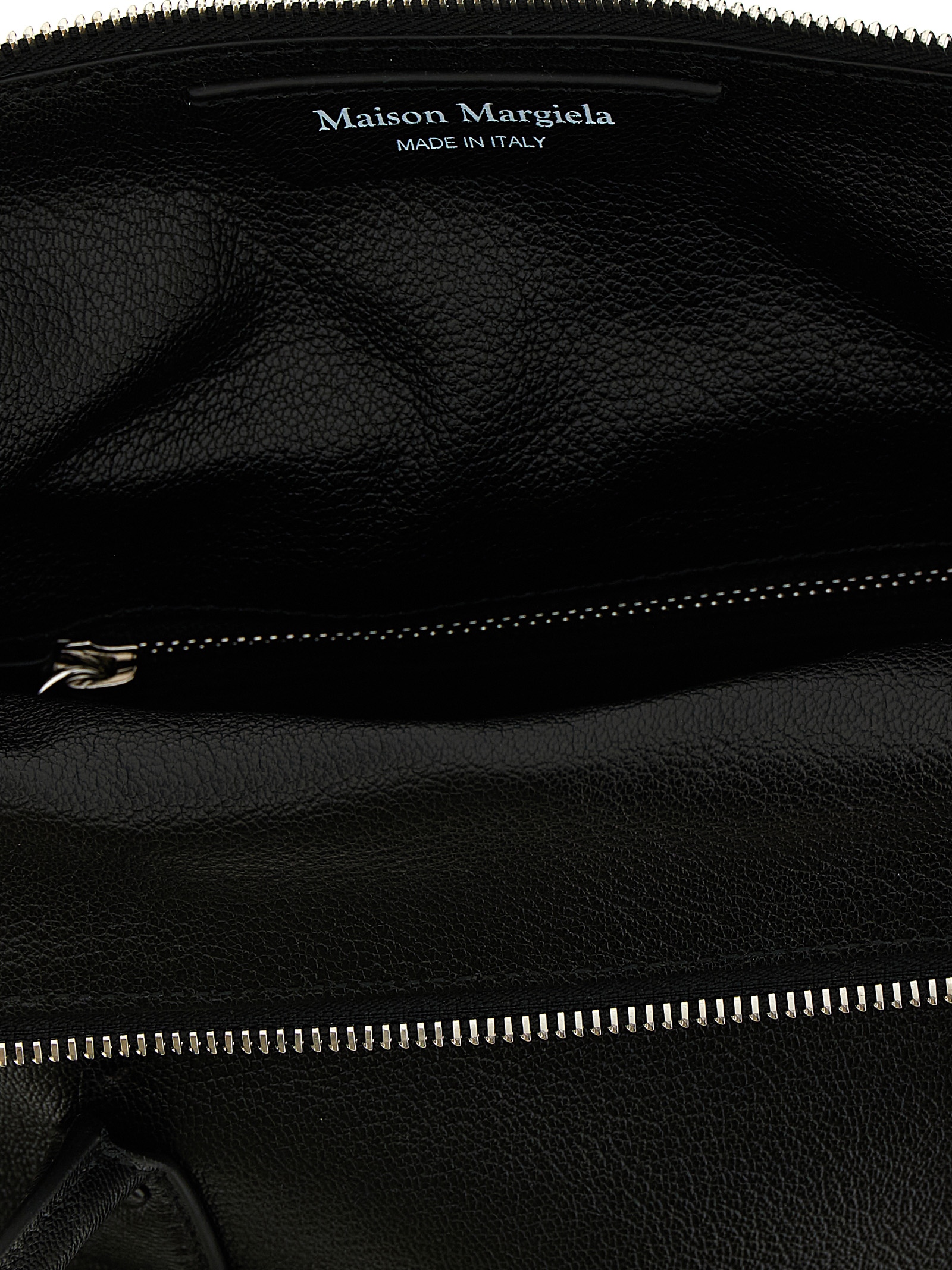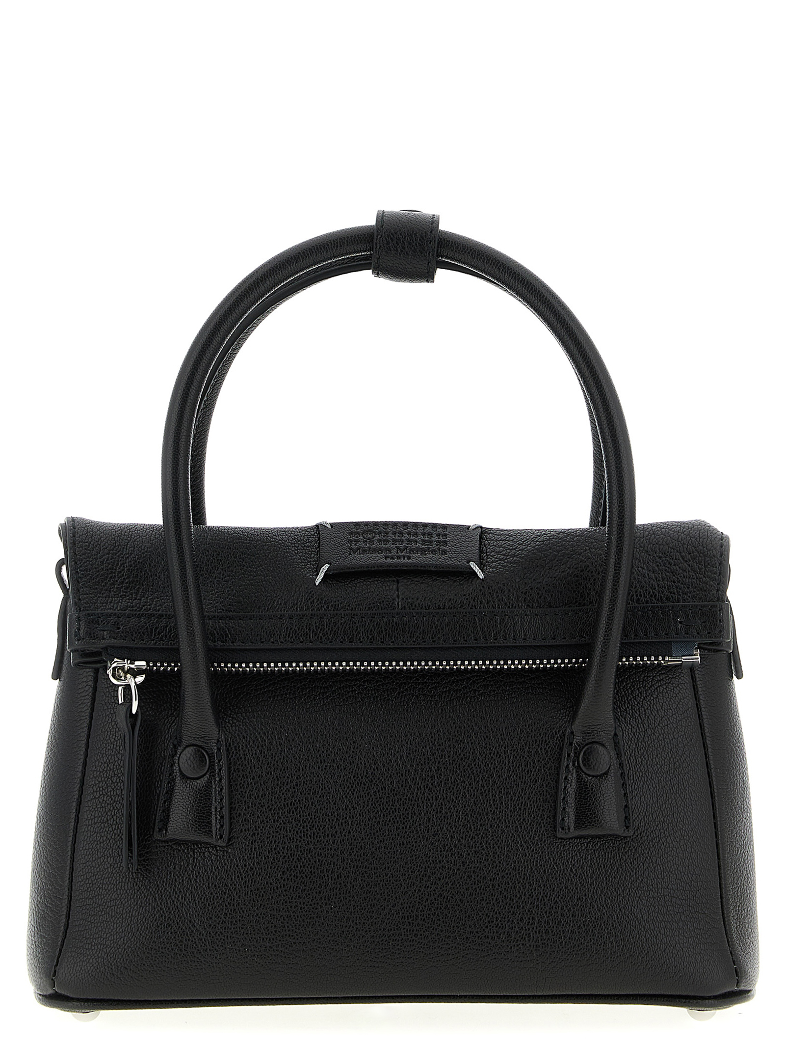 Small hammered leather ‘5AC East West’ handbag, folded zip closure and tone-on-tone ‘Numeric signature MM6’ patch, double fixed handle, rigid base with metal feet, adjustable and removable shoulder strap.