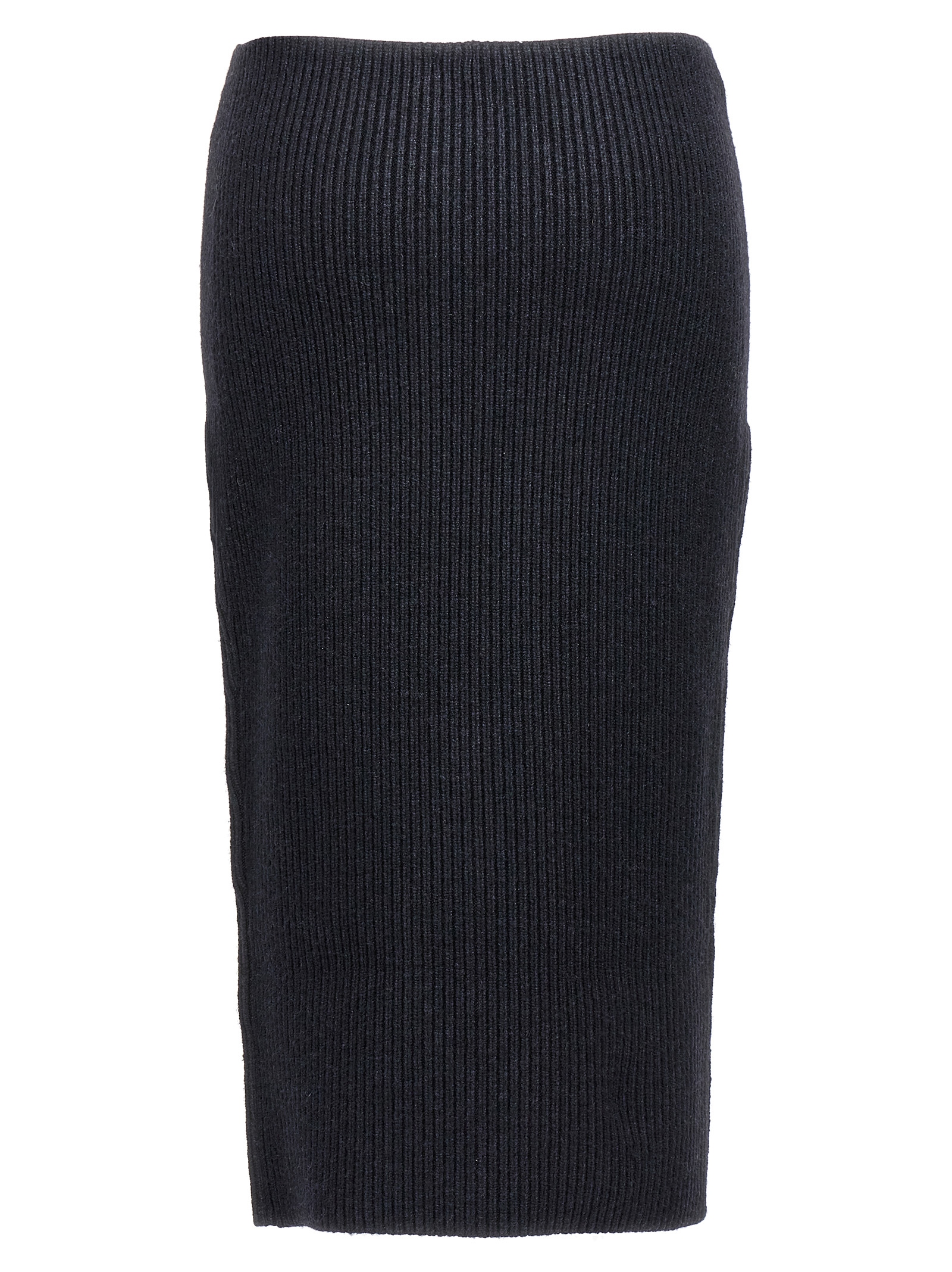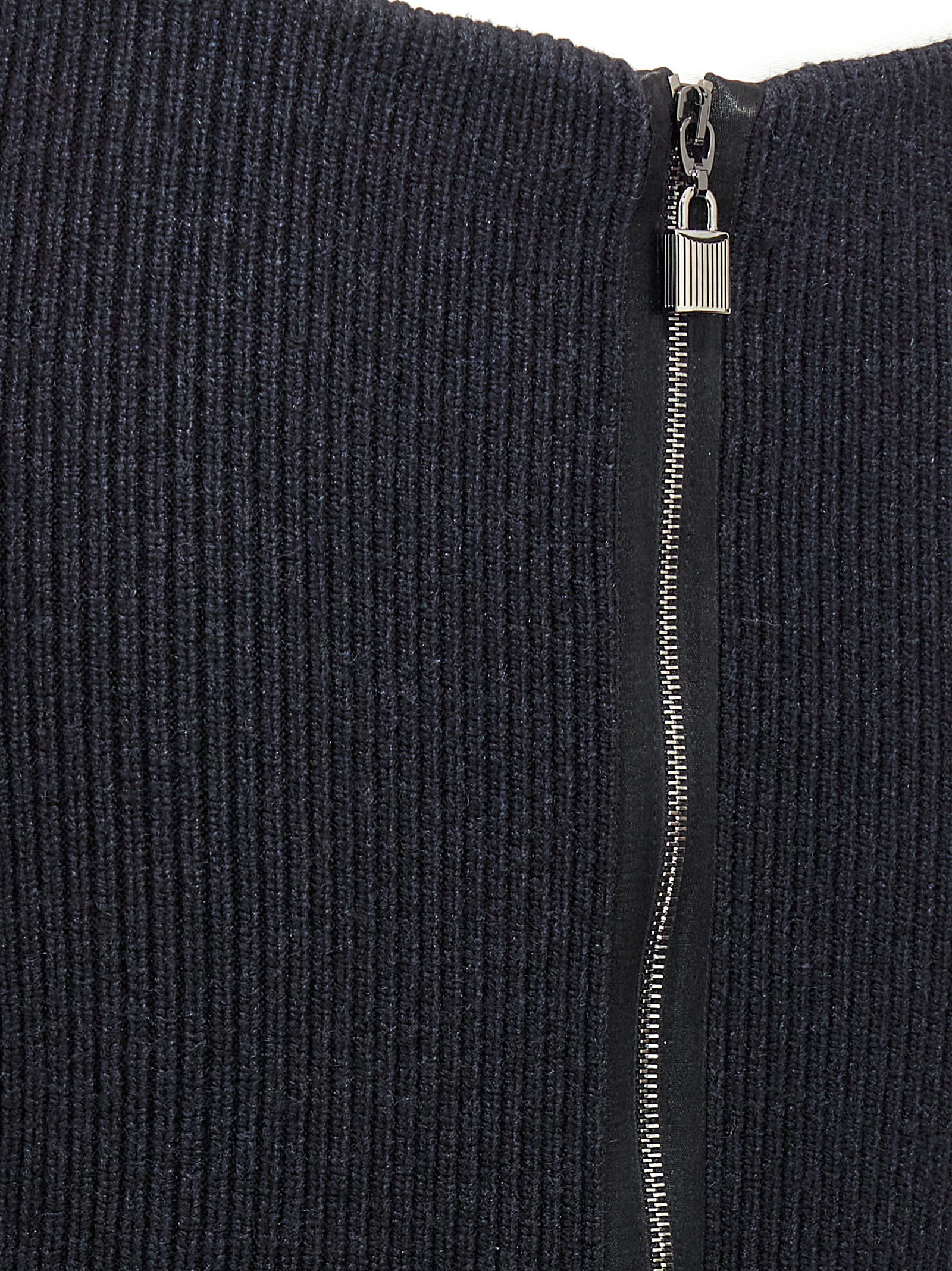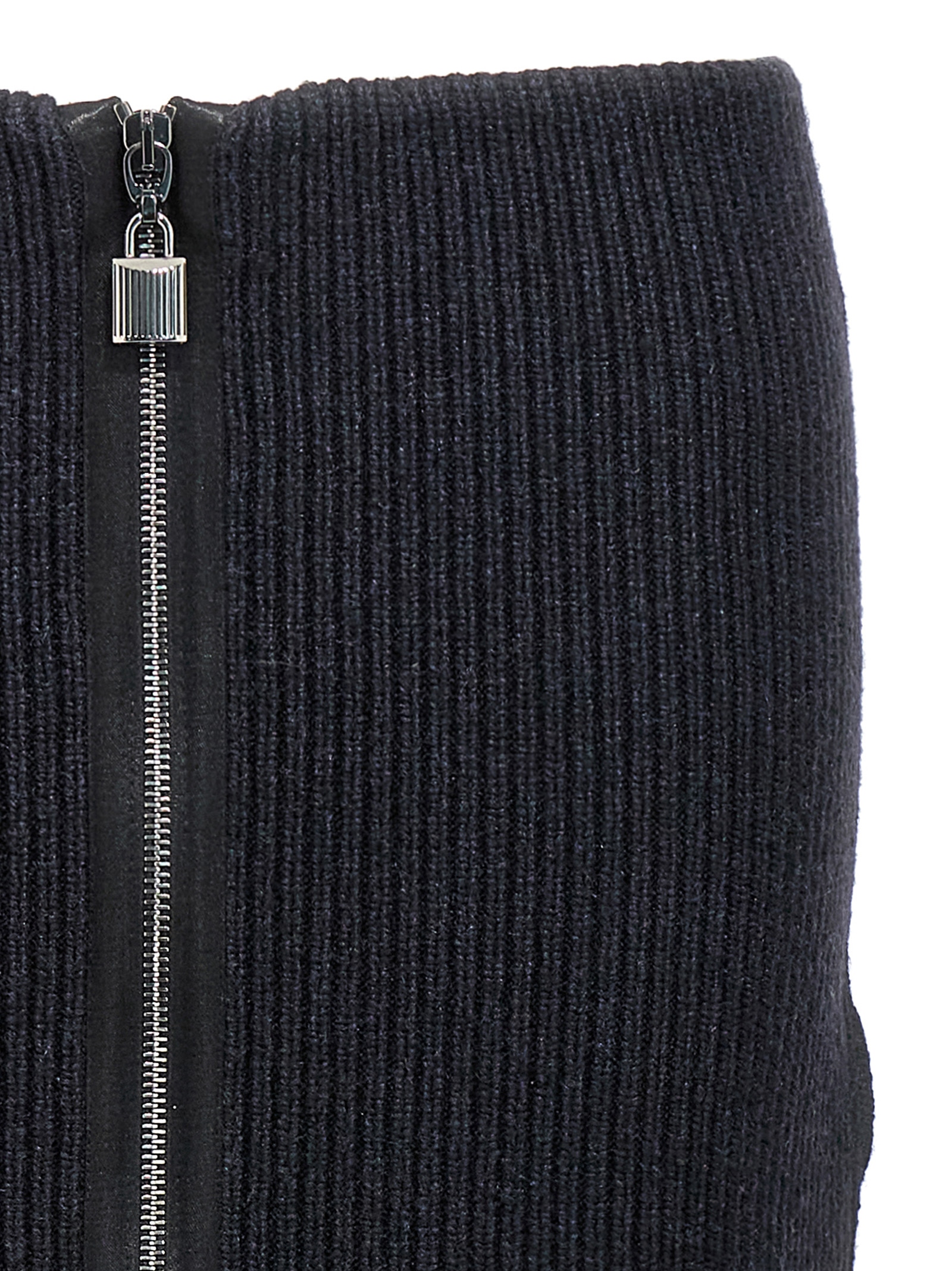 5GG ribbed knitted skirt in compact wool with zipper closure, and padlock detail.
