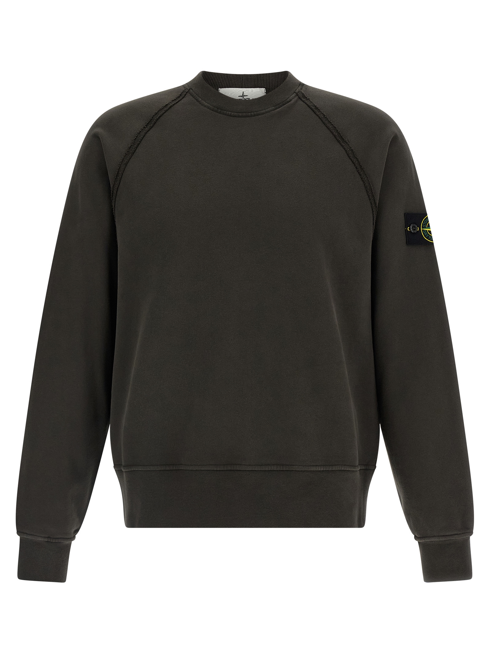 ‘6100022’ sweatshirt in garment-dyed brushed cotton with overlock seams, crew neck, long cuffed sleeves, dropped shoulders and logo badge appliqué.