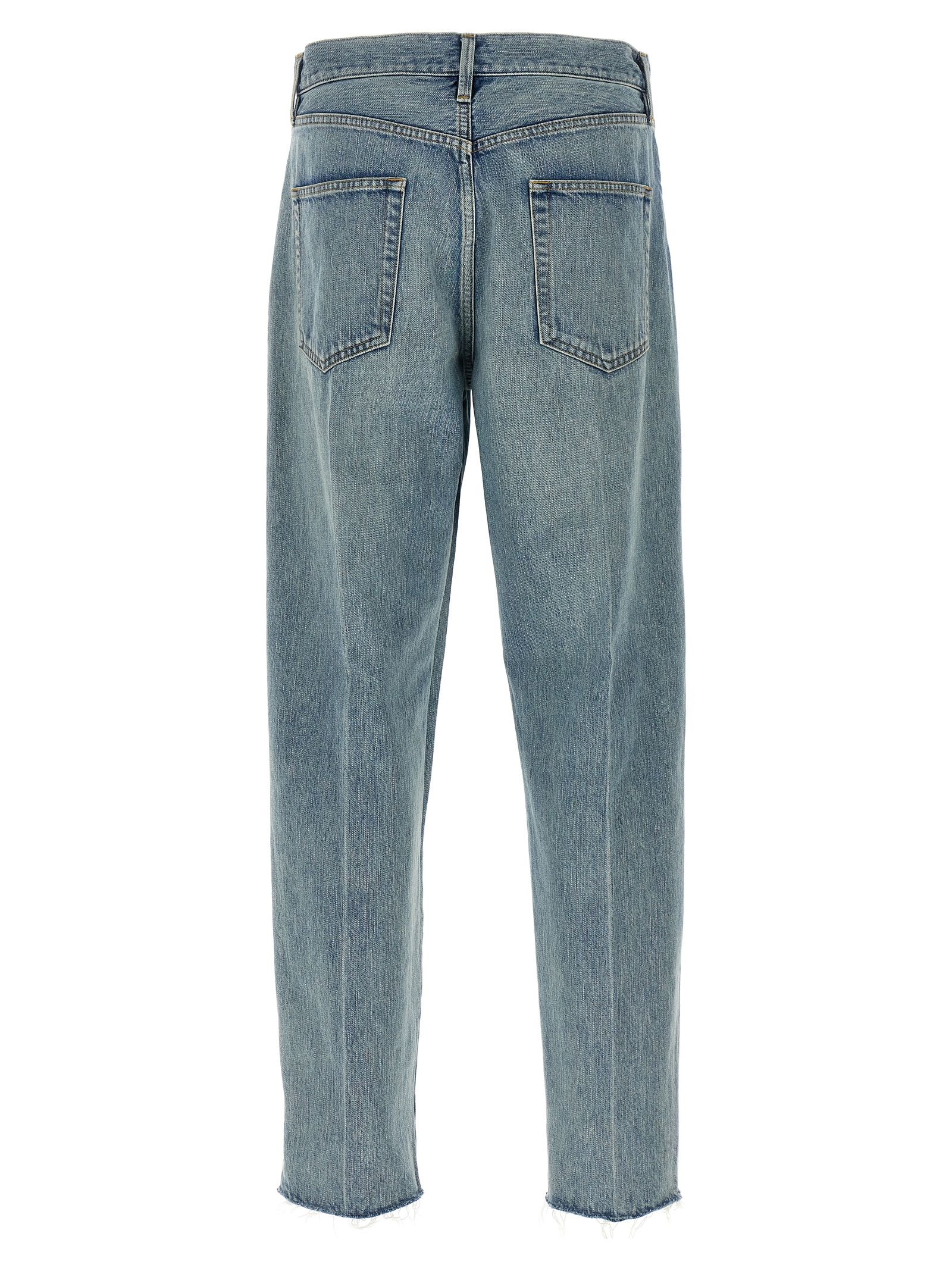 ’80s 5 pocket’ cotton denim jeans with regular fit, button closure, front logo patch.