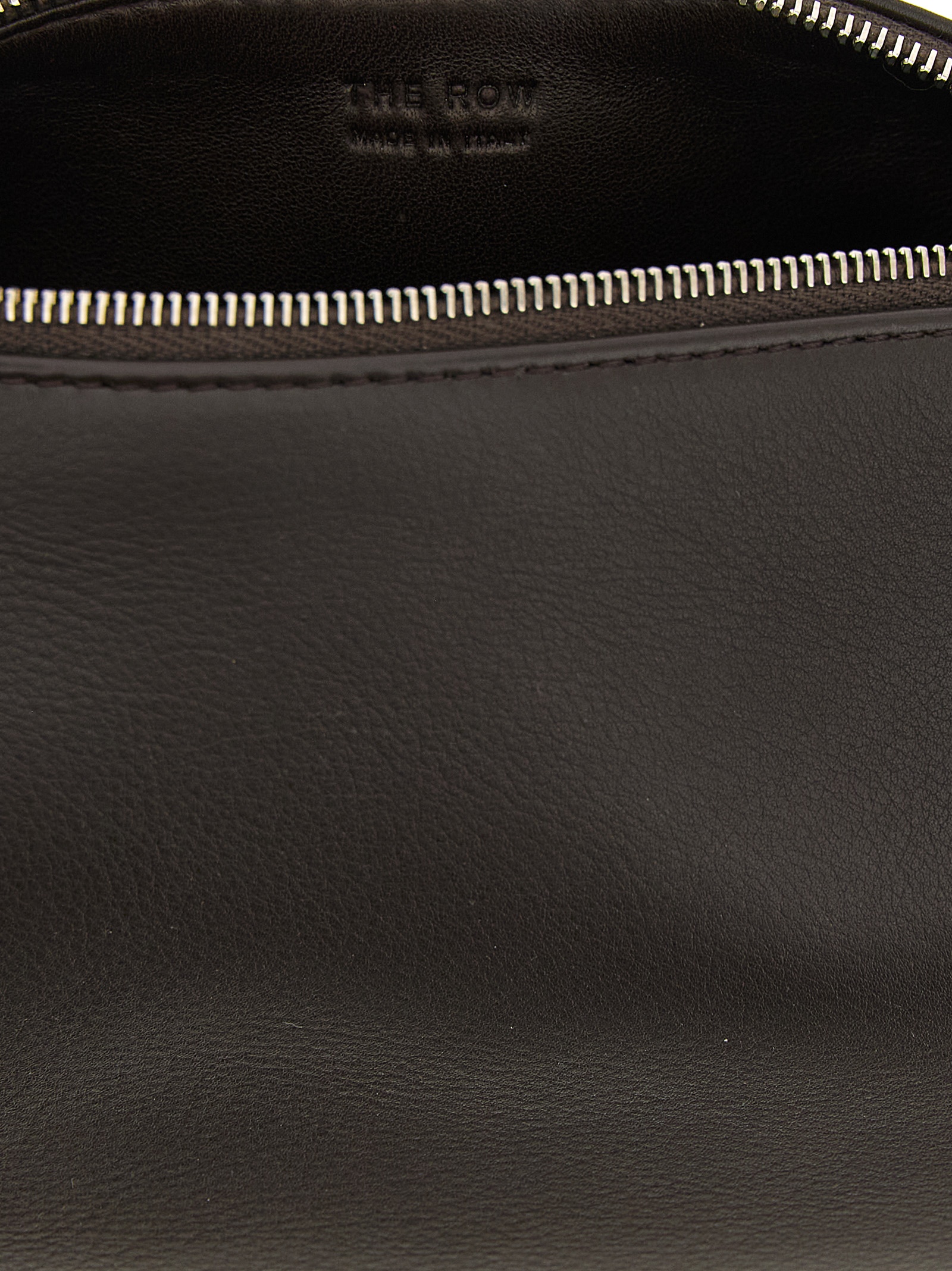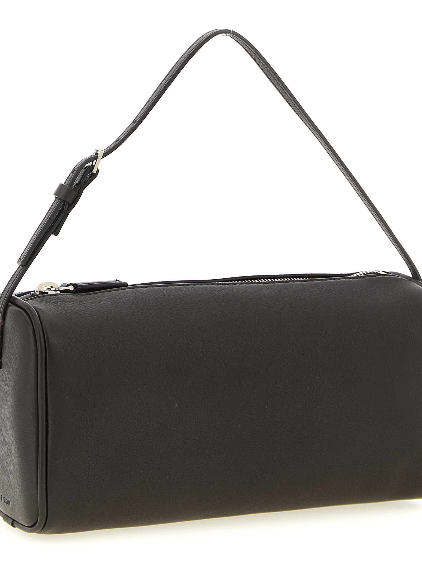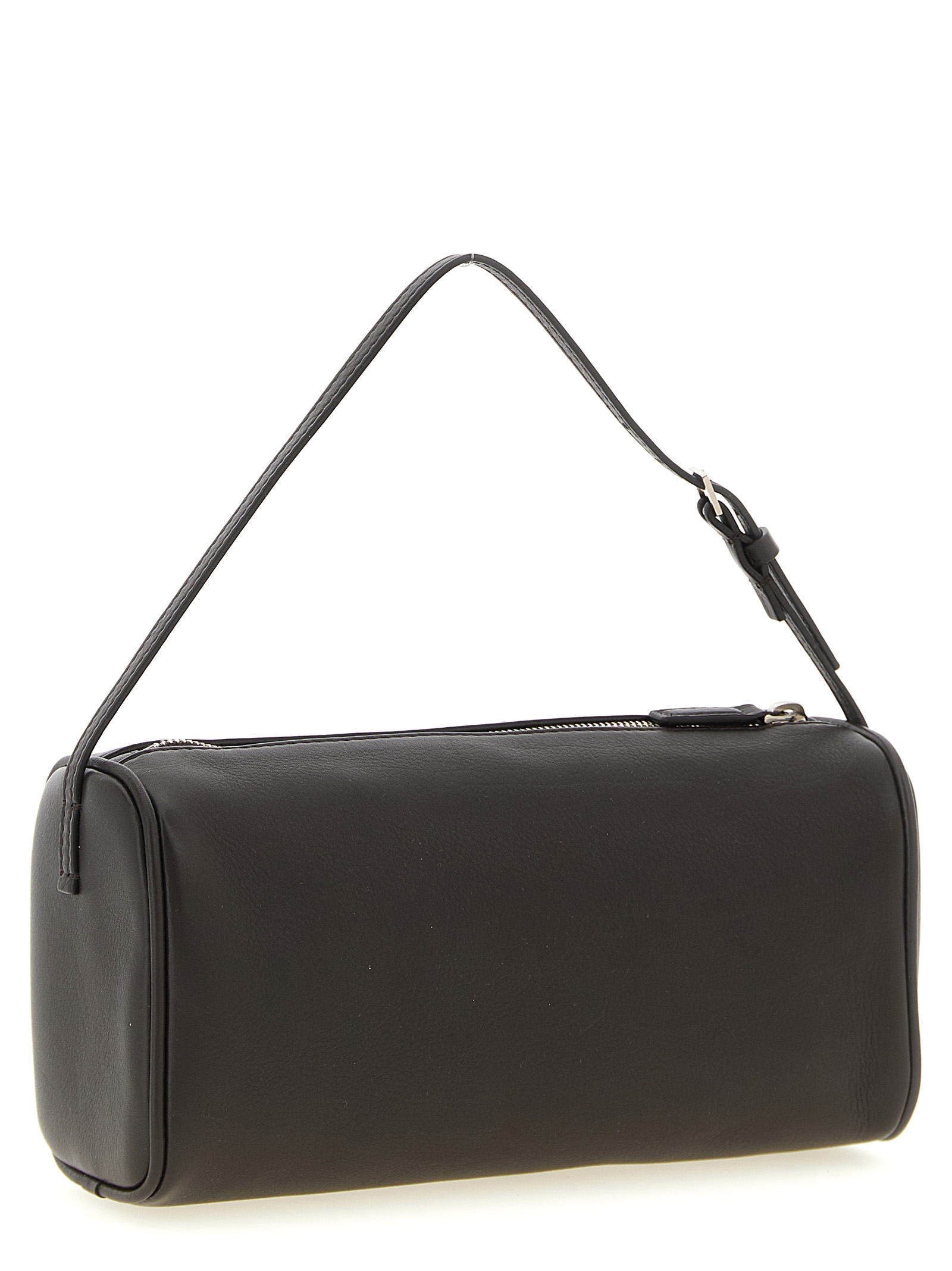 ’90’s’ grainy leather handbag with adjustable handle, top zip closure.