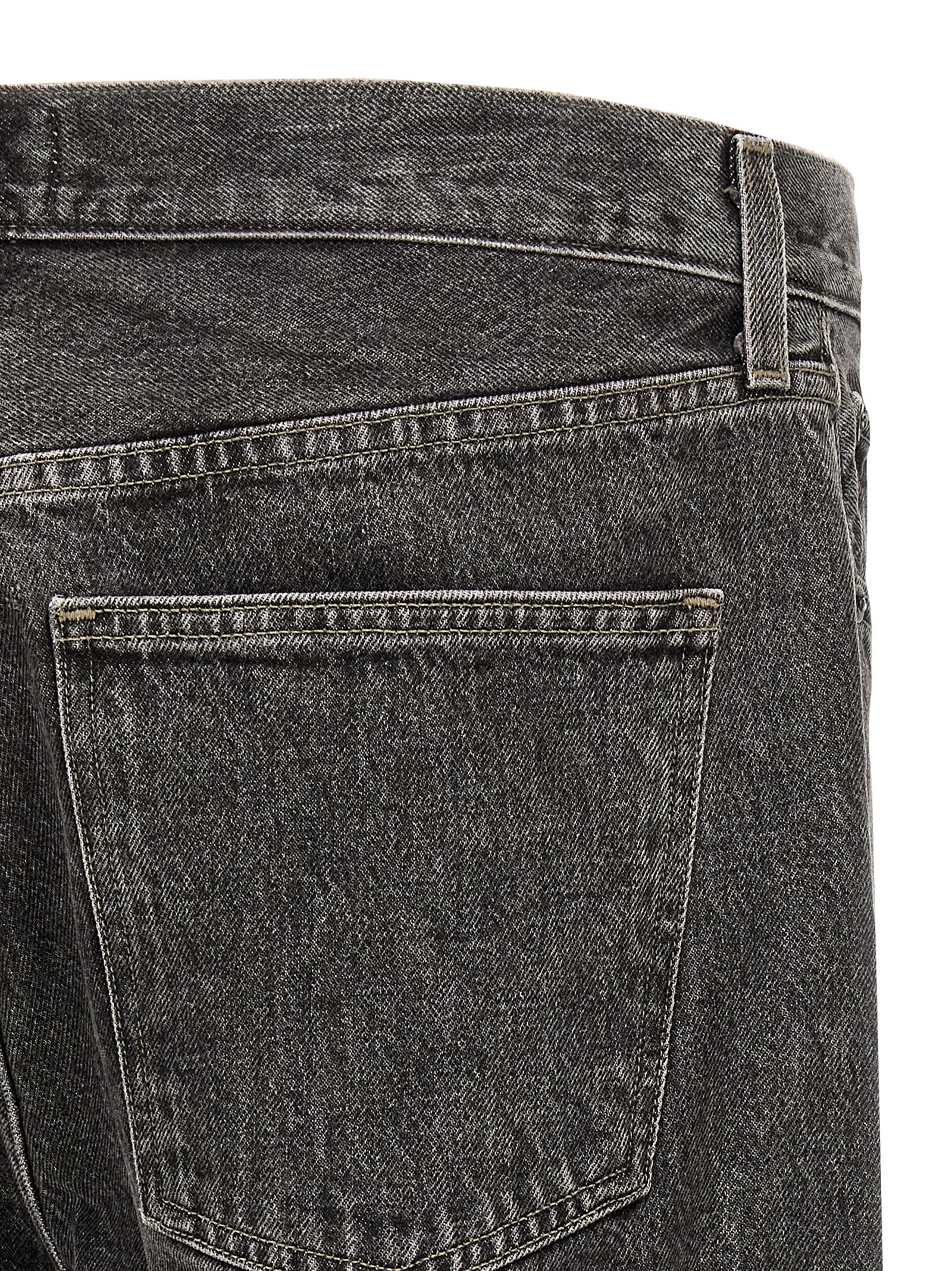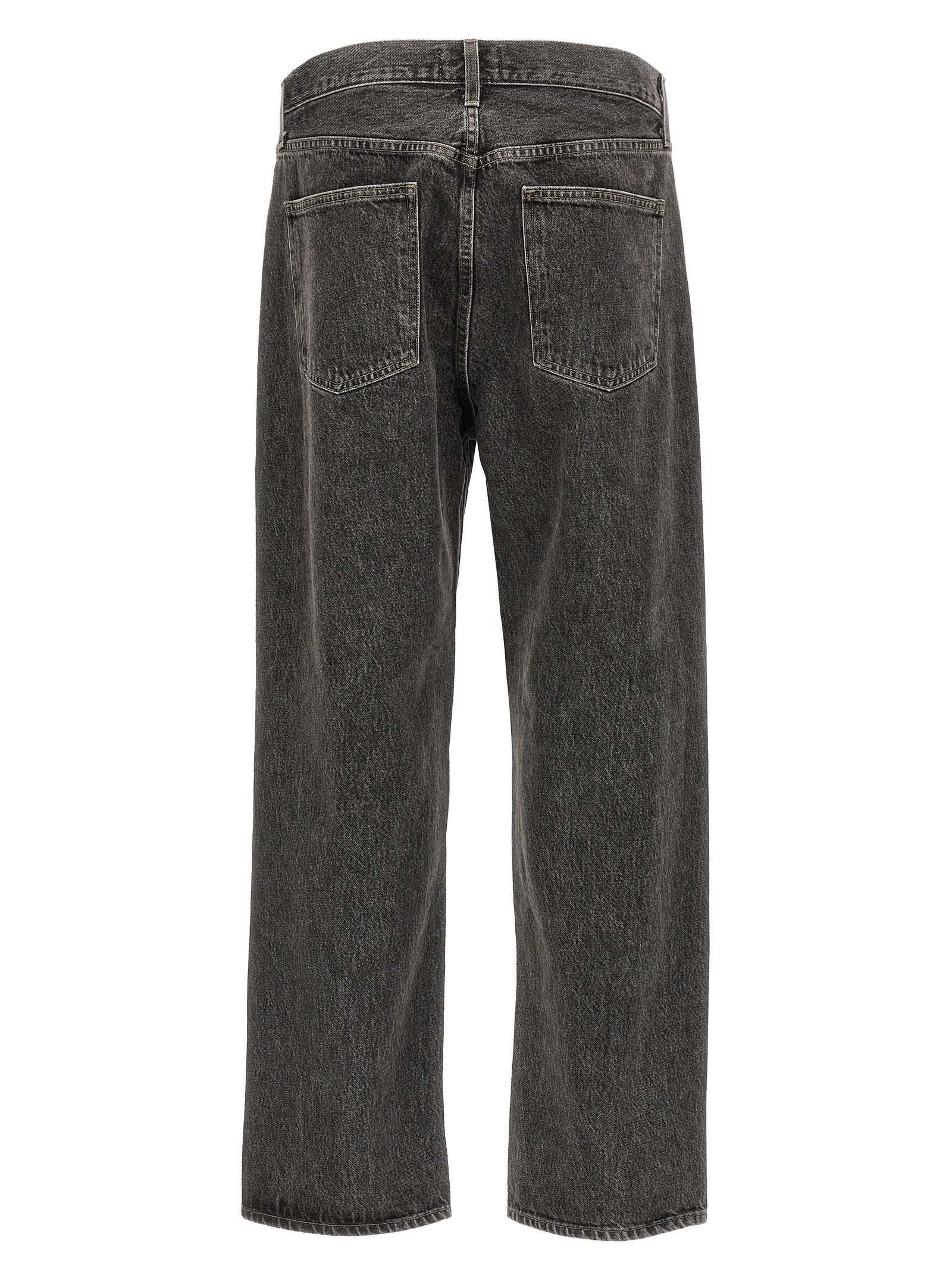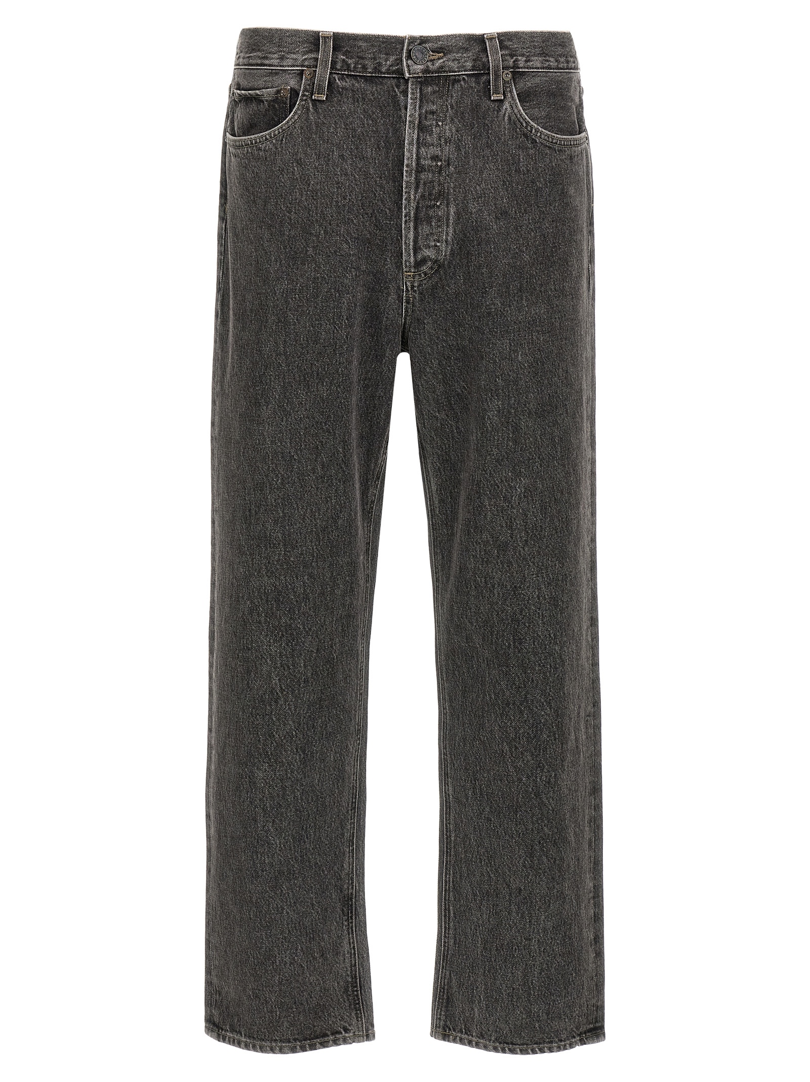 ’90’s’ cotton denim jeans with button closure, five pockets, mid waist model, straight leg.