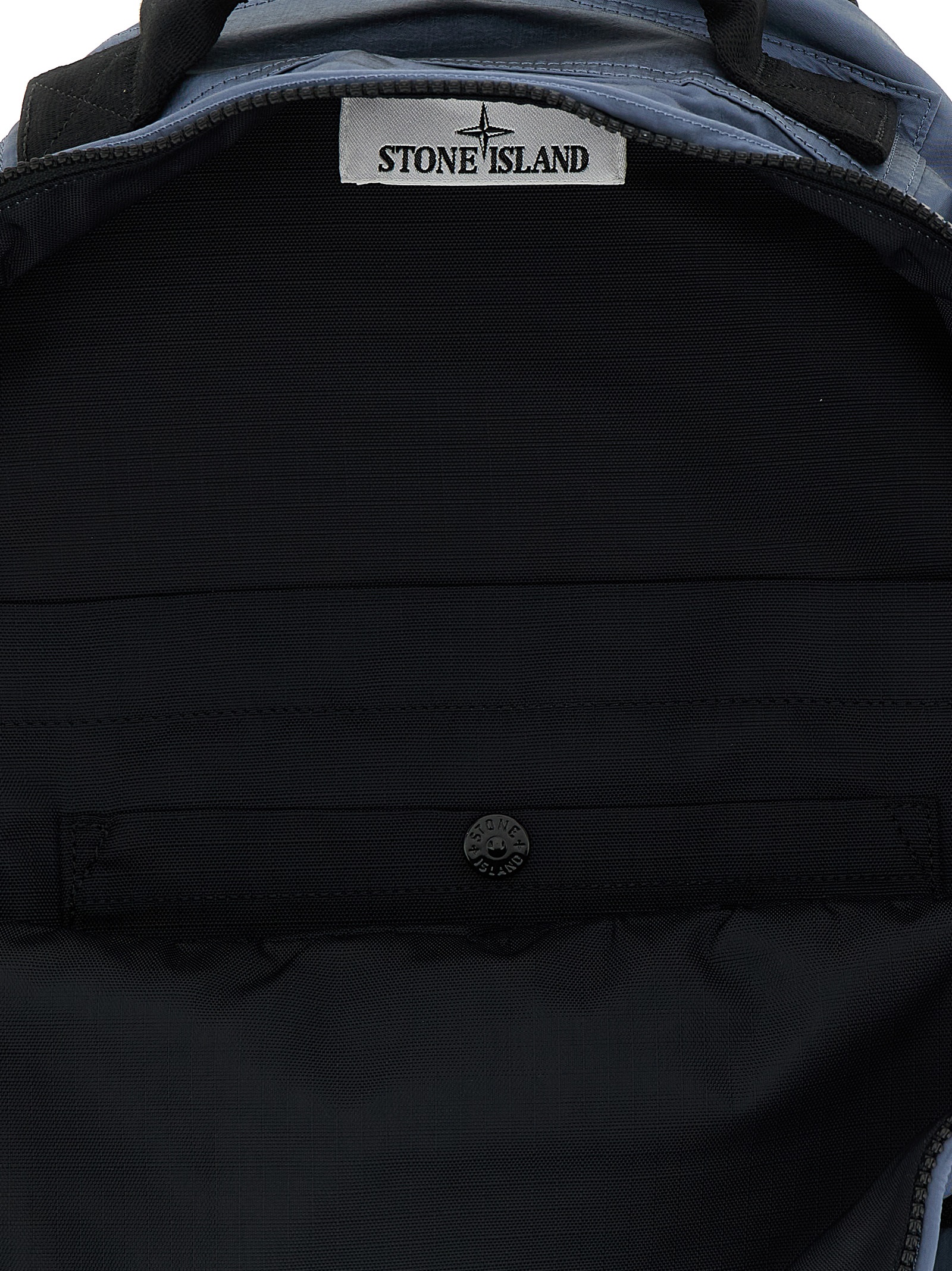 ‘9200010’ garment-dyed Nylon Metal backpack with a wrinkled-effect two-color recipe, polyurethane lining, ‘Compass’ logo patch and front zip pocket, top handle and zip closure, adjustable padded shoulder straps, padded backrest.
