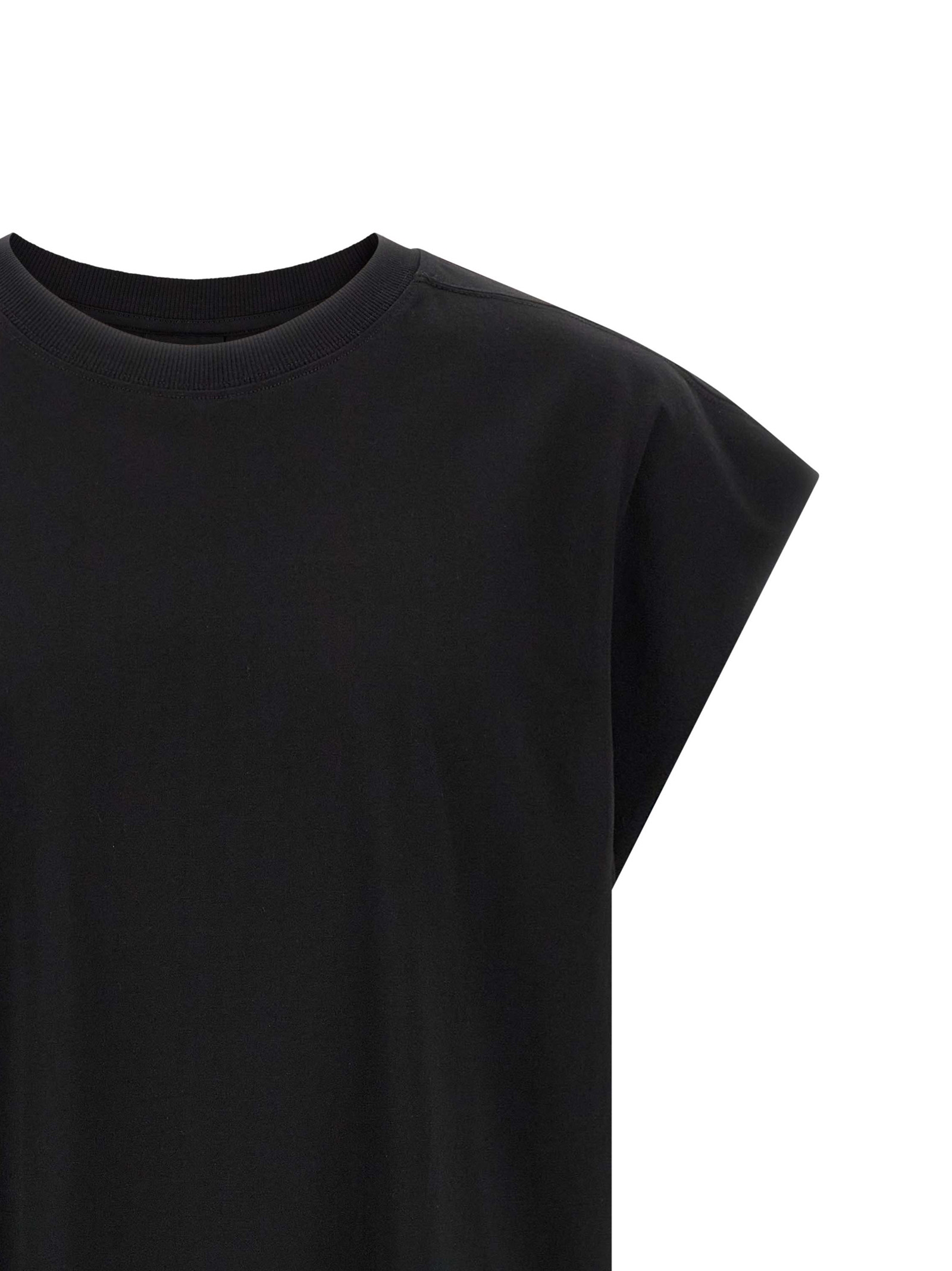 ‘925’ used-effect cotton jersey t-shirt with round neckline, raw cut hem, dropped shoulder and contrast stitching at the back.