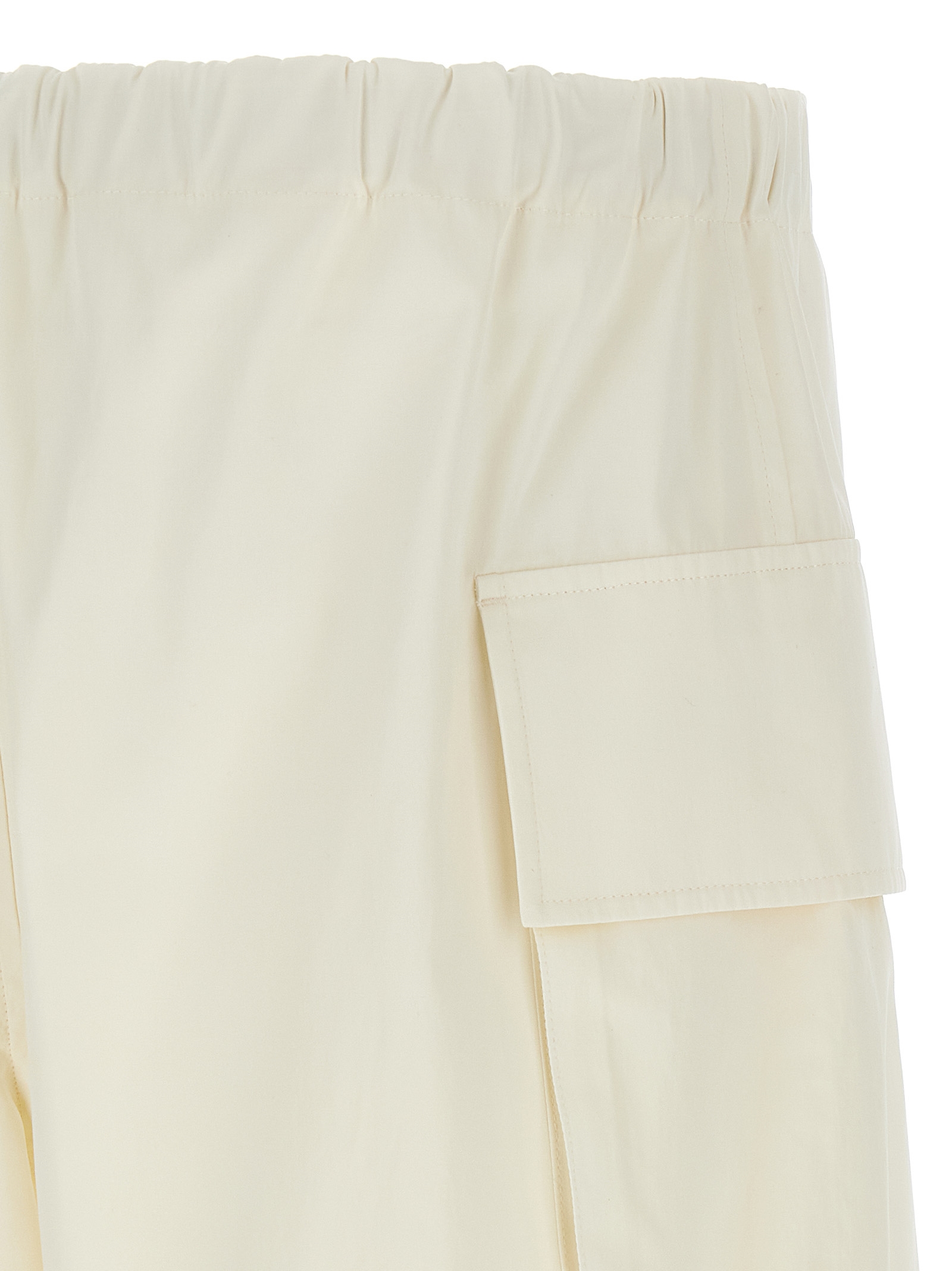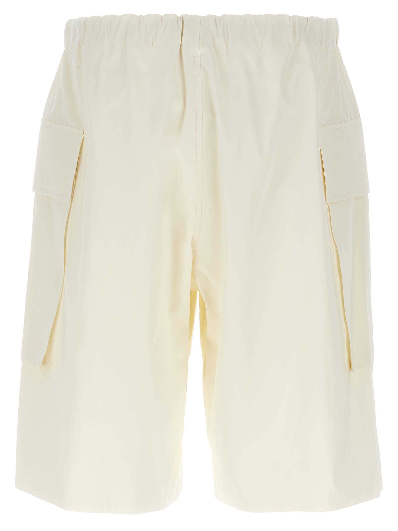 ’94’ cotton poplin bermuda shorts with low crotch style, tone-on-tone logo embroidery on the front, cargo pockets, adjustable drawstring at the waist, zip and front button closure.