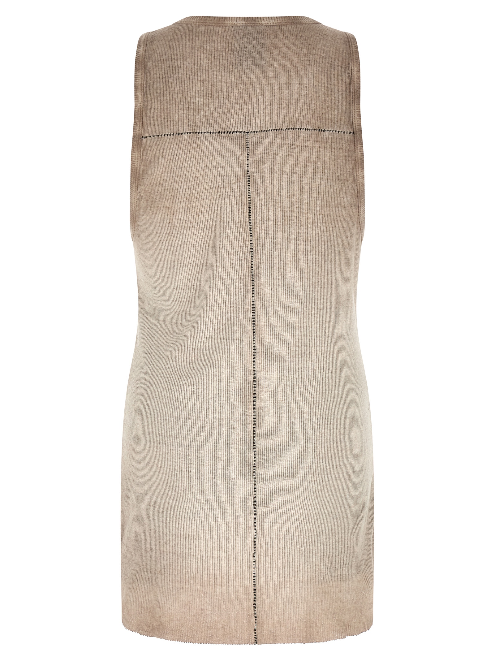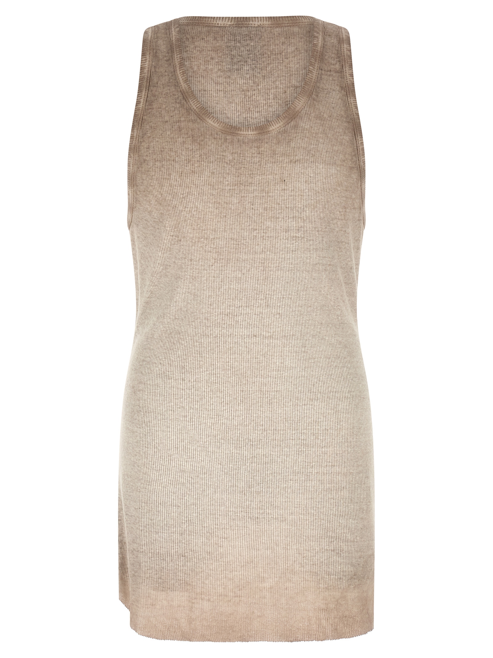 ‘947’ tank top in ribbed cotton and linen blend with délavé effect, round neckline, rounded hem with raw cut hem.