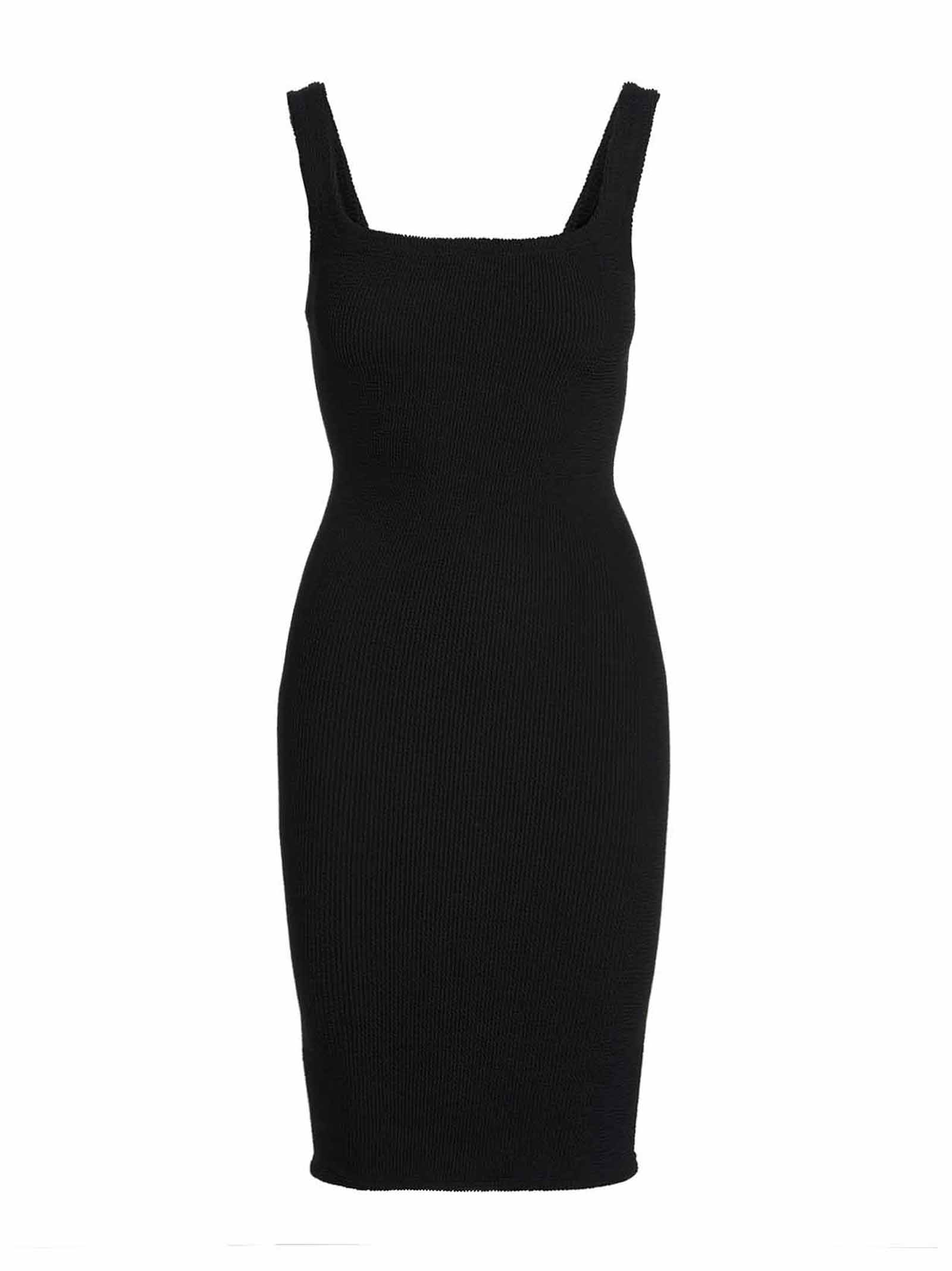 Abito ‘Tank dress’ in tessuto stretch “seamless crinkle” modello con spalline sottili e scollo squadrato.