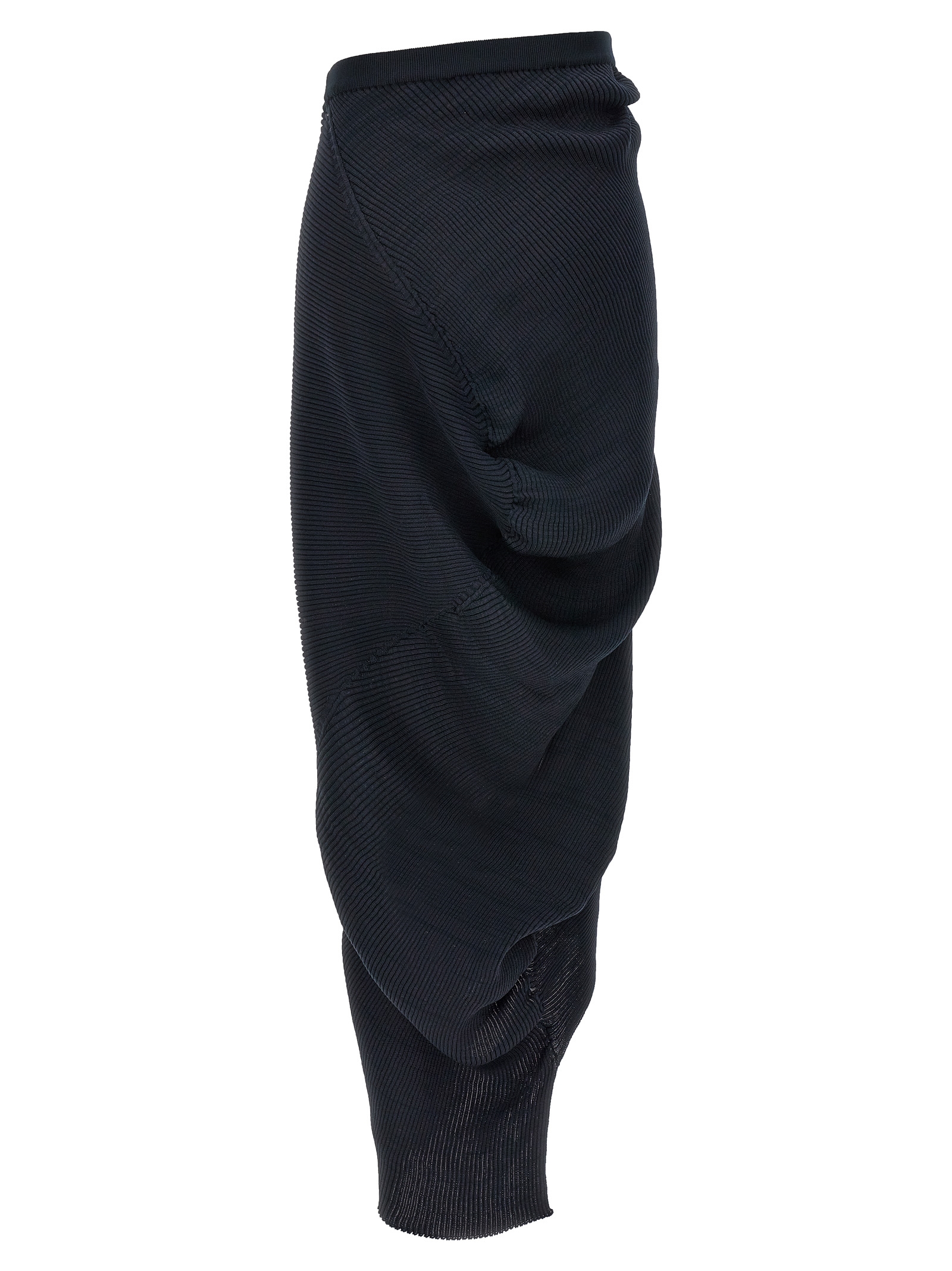 ‘Aerate’ pleated skirt with elastic waistband, asymmetrical design.