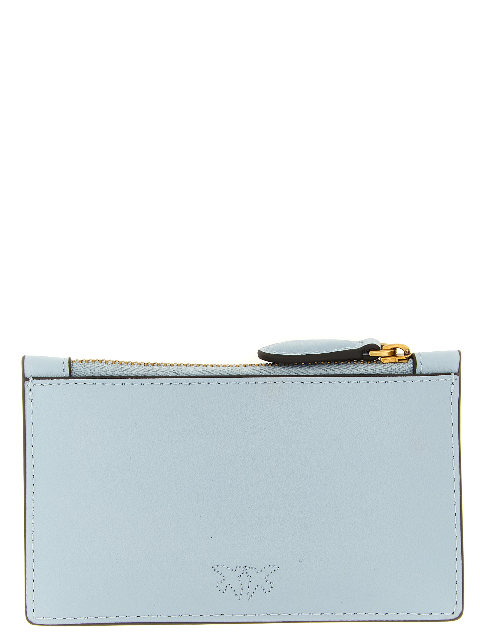 ‘Airone’ silk leather card holder, metal ‘Love Birds Diamond Cut’ logo plaque on the front, top zip closure, polycotton lining.