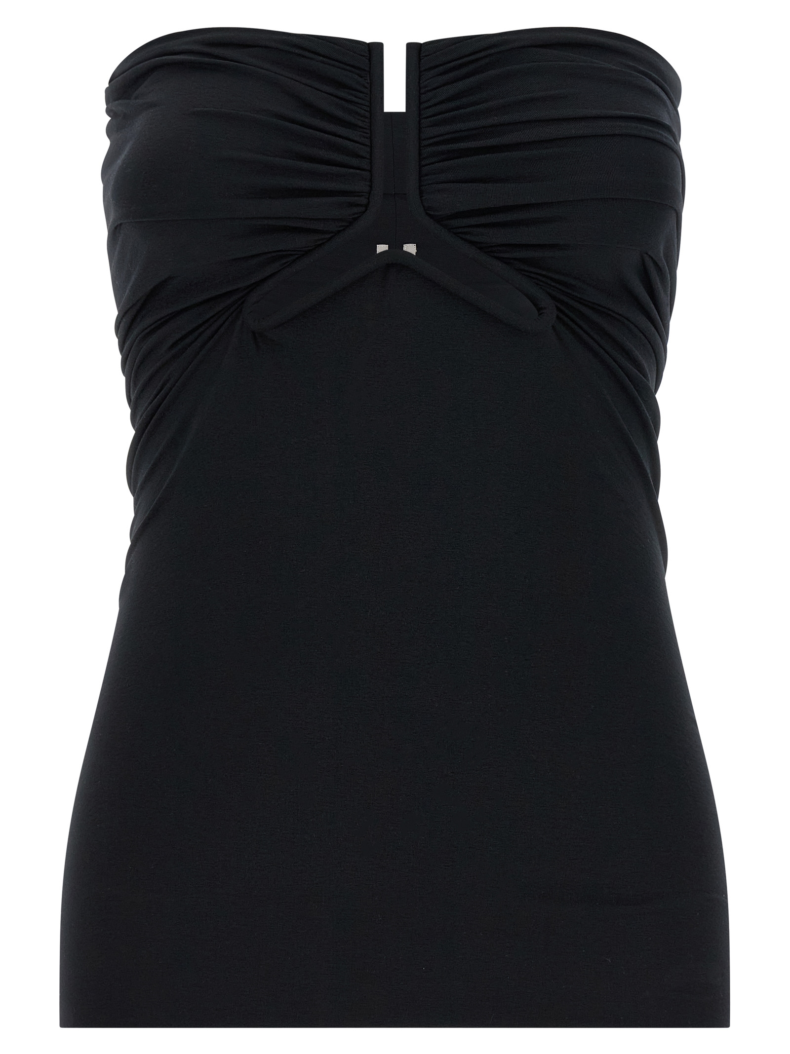‘Alannah Prong Bustier’ off-the-shoulder top in stretch jersey nylon with metal underwire neckline.