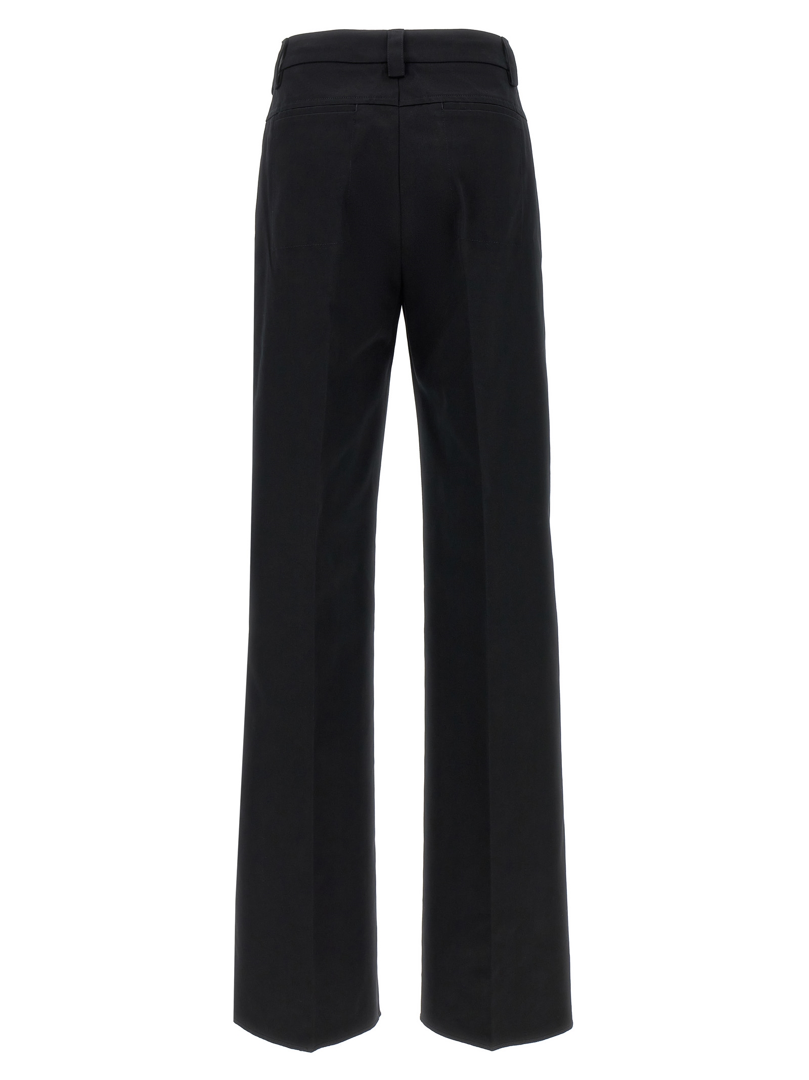 ‘Alek’ cotton canvas pants, hook and button zip closure, wide leg with stretched pleat.