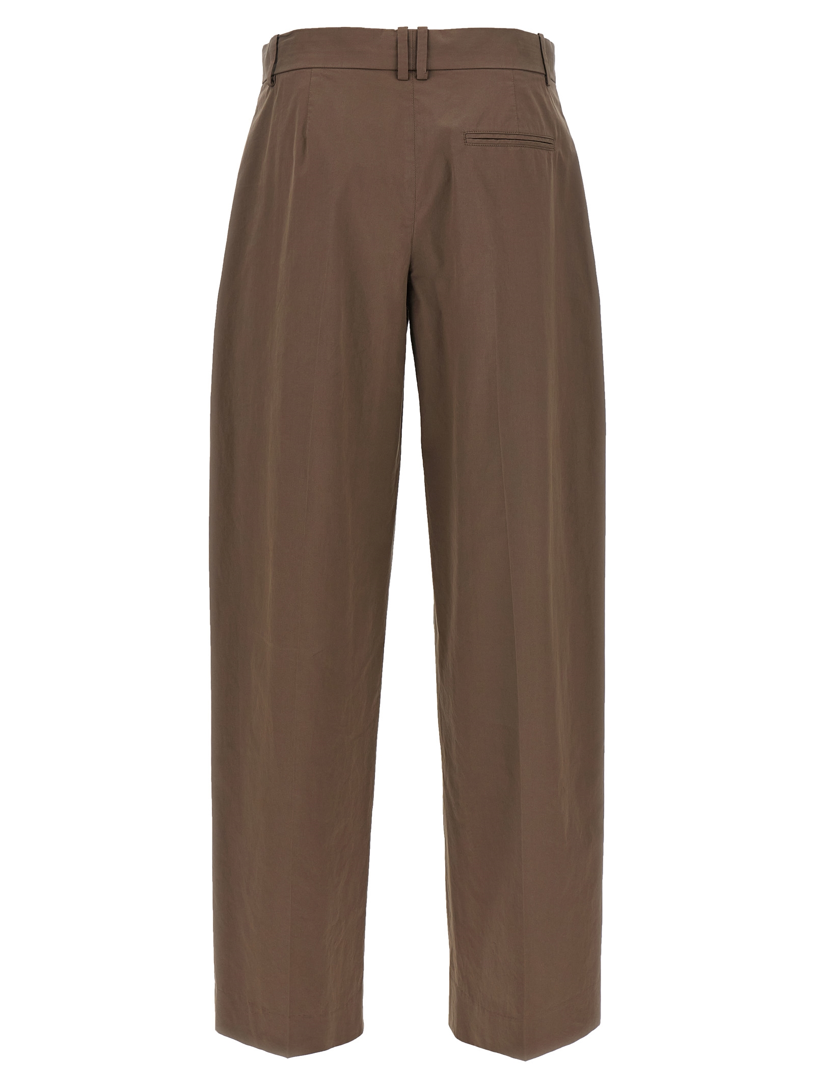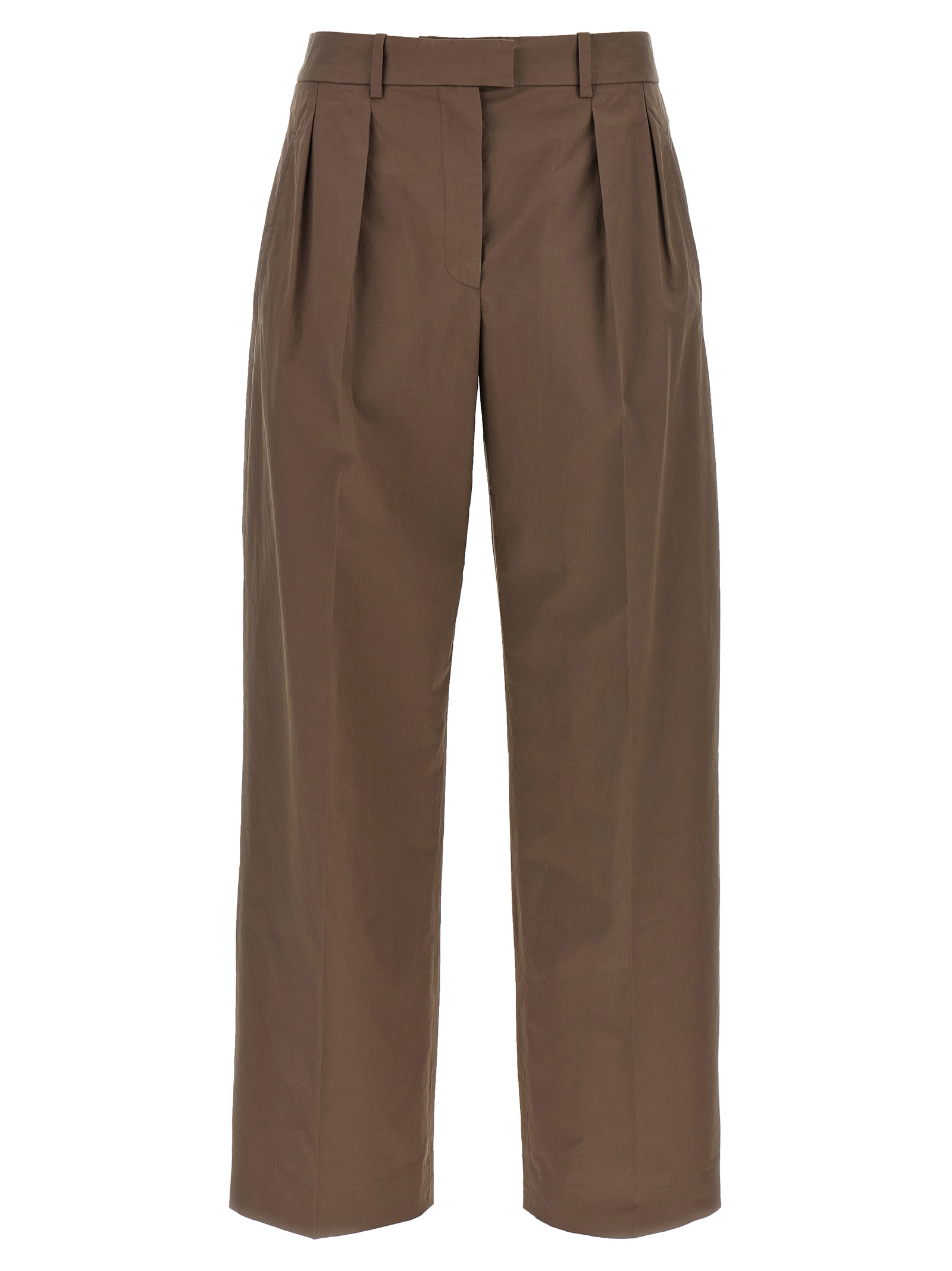 Pima ‘Alfidis’ low-waisted cotton pants with straight leg, pleats and stretched pleat, zip, hook and front button closure, pockets.