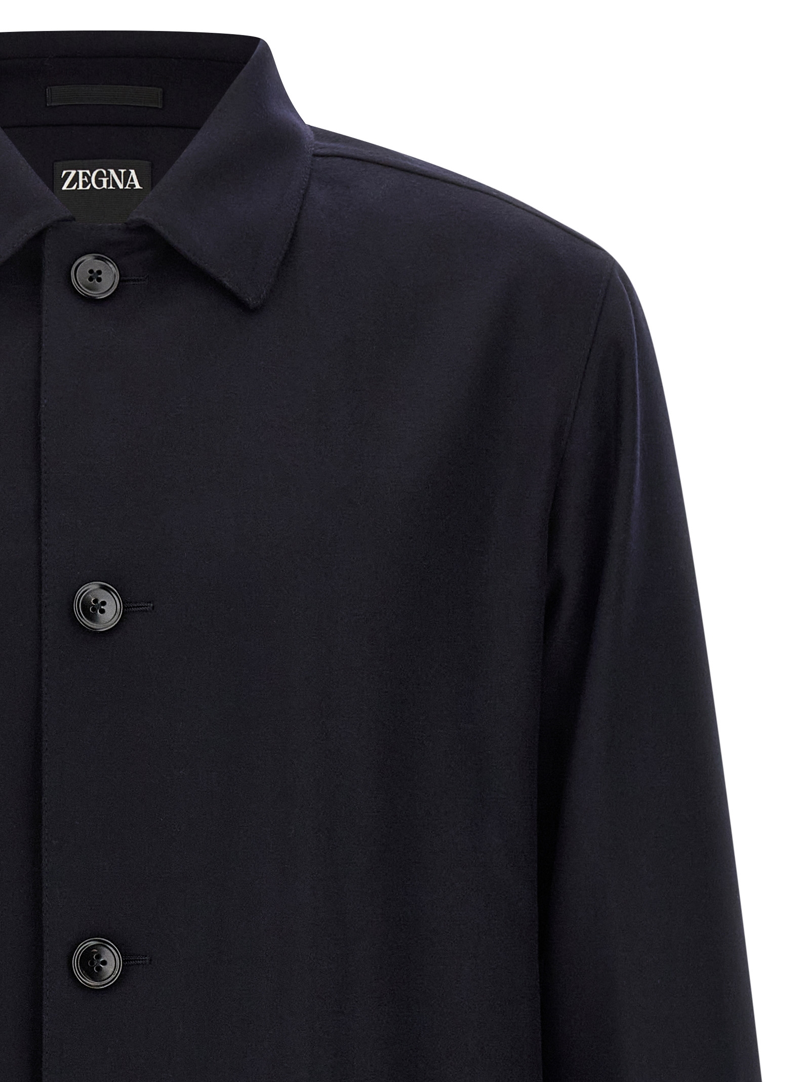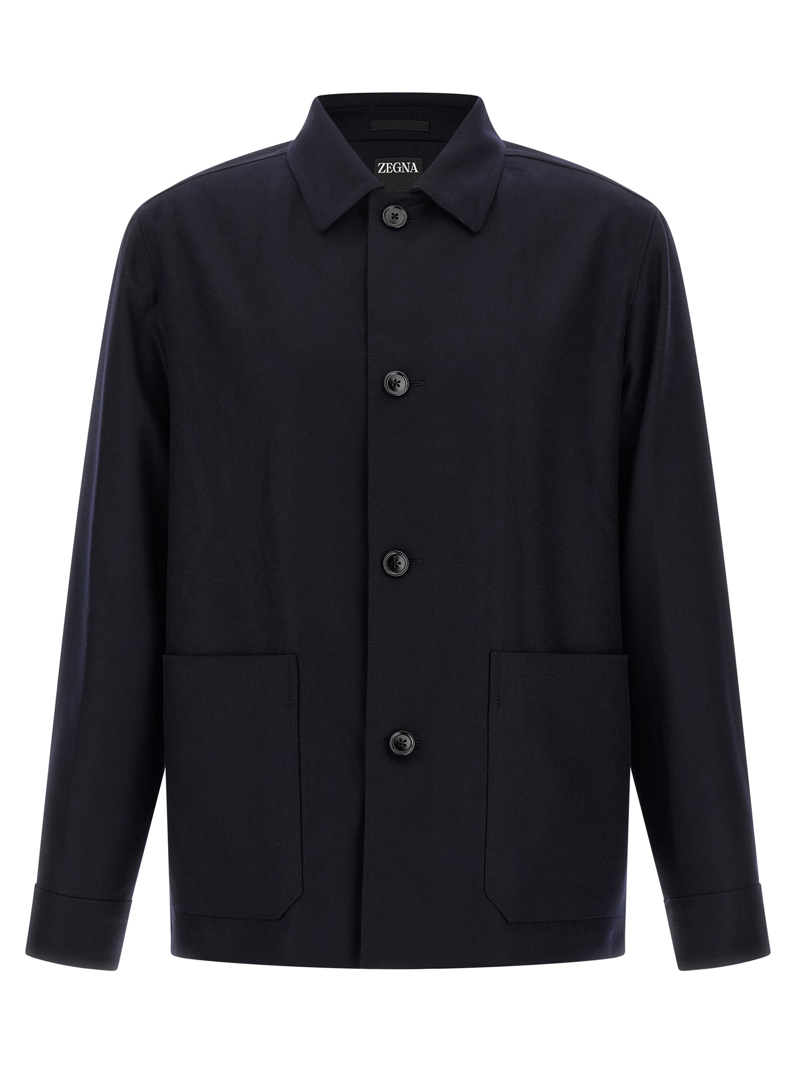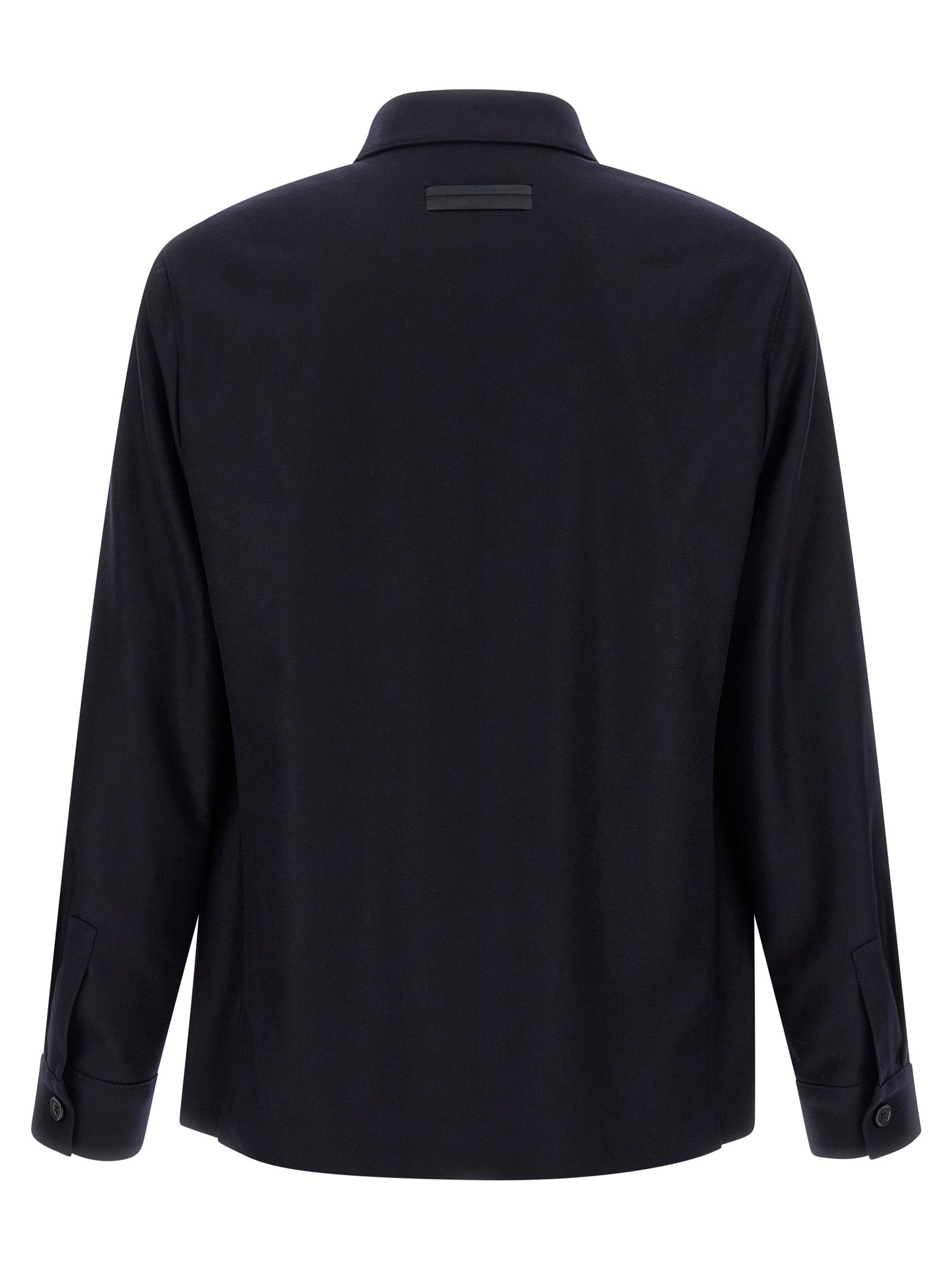 Pure wool ‘Alpe’ overshirt, back leather ‘ZEGNA 232 Road Brand Mark’ patch, front button closure, pockets, long cuffed sleeves, back vents.