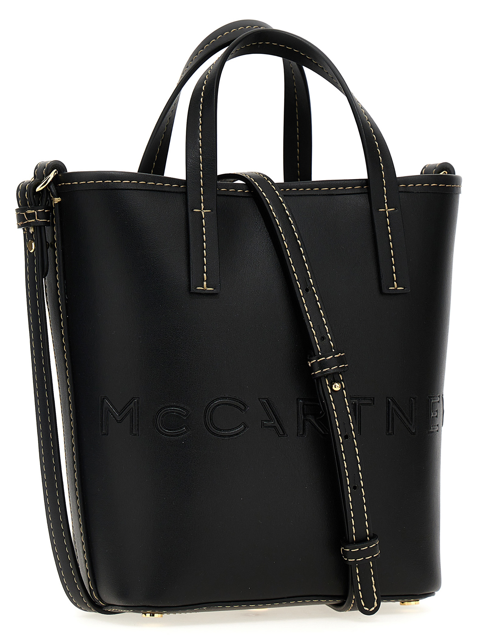Alter Mat fabric bucket bag with embossed logo, double handle, adjustable and removable shoulder strap, magnetic closure.