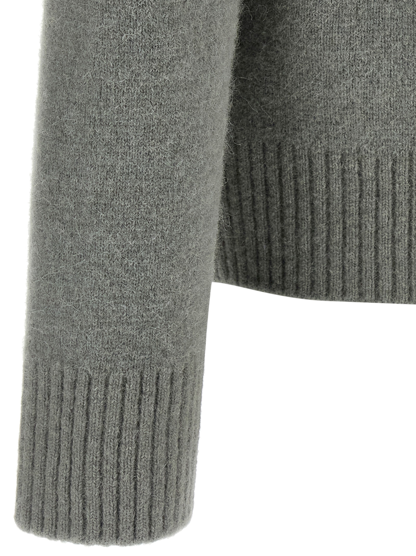 Felted merino wool knit polo shirt with contrast ‘Ami De Coeur’ intarsia on the front, collar and buttons, long cuffed sleeves and dropped shoulders.