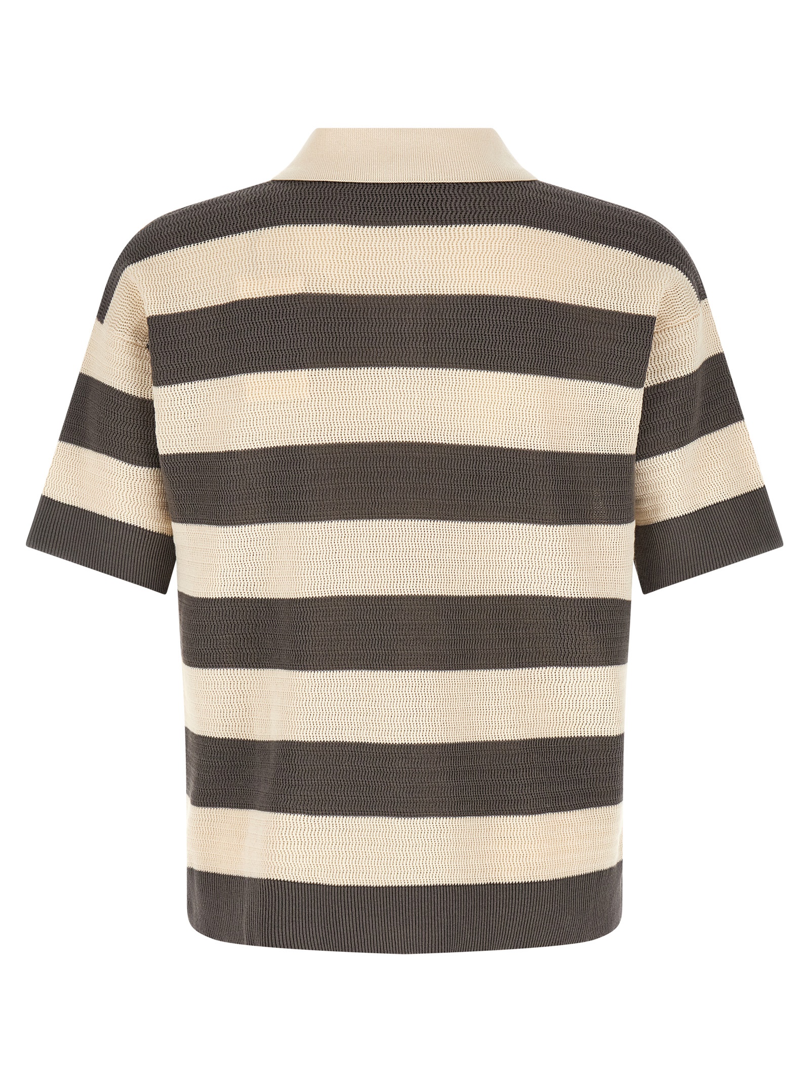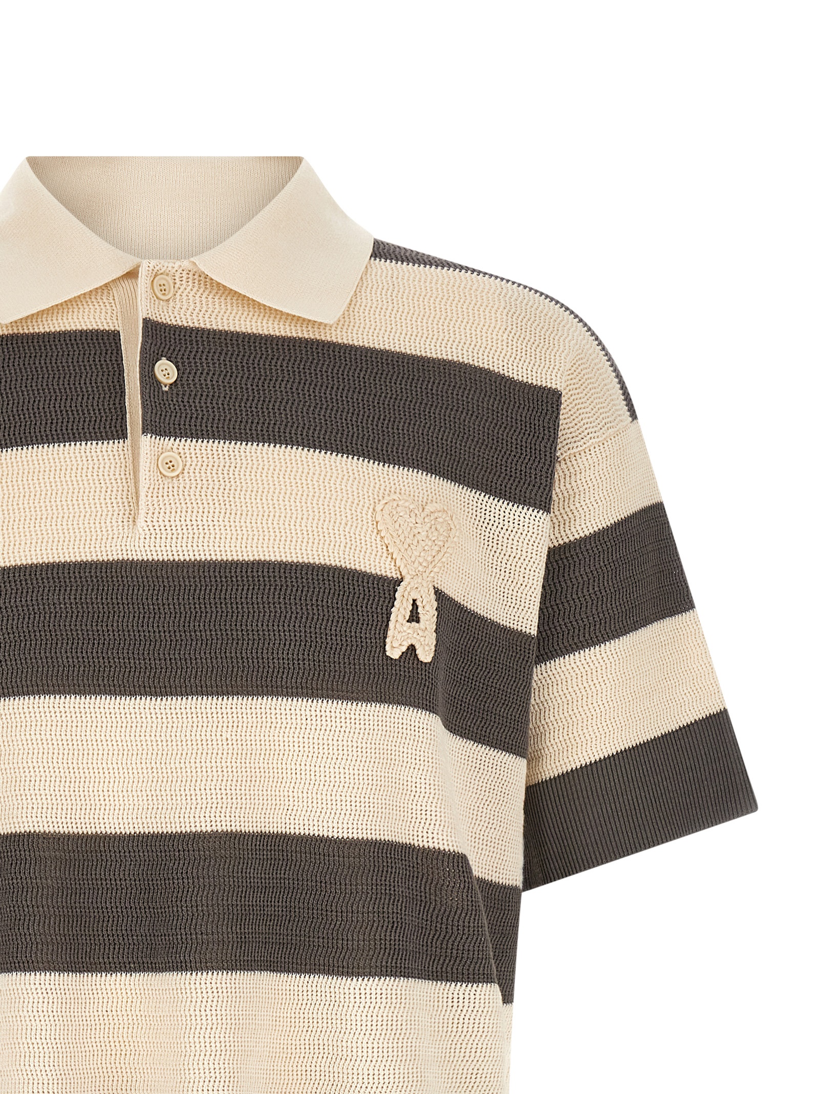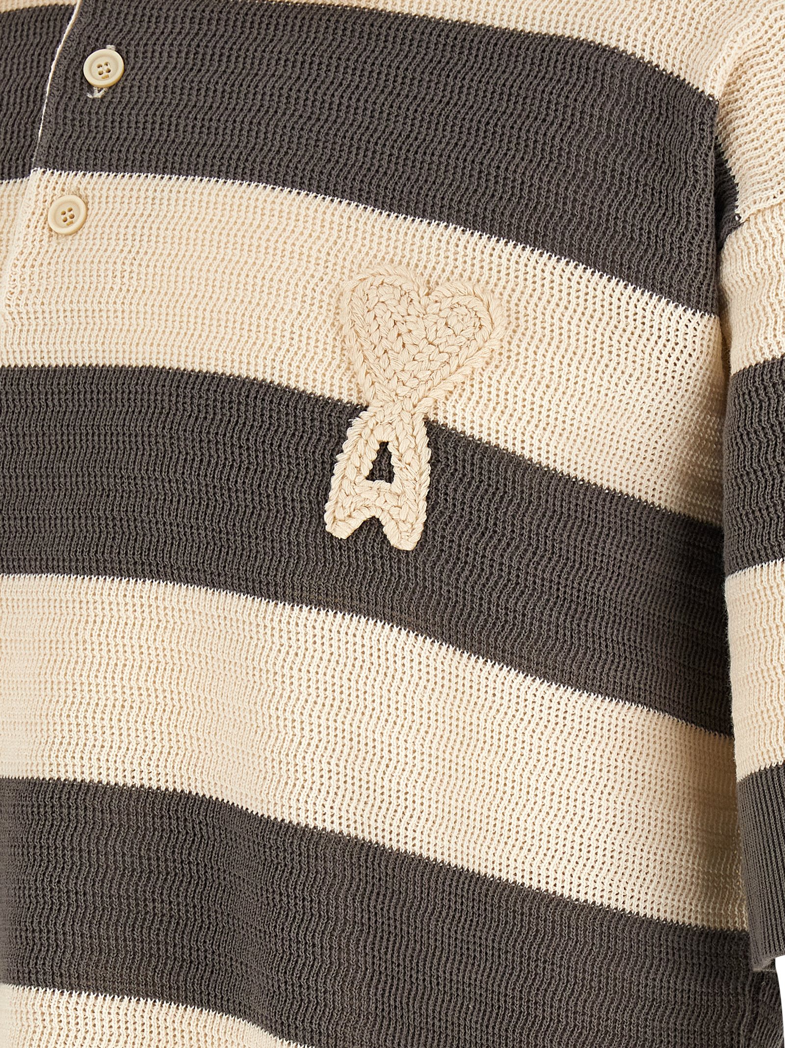 Polo shirt in perforated striped cotton knit, front crochet ‘Ami de Coeur’ patch, collar and buttons, short sleeves with dropped shoulders.