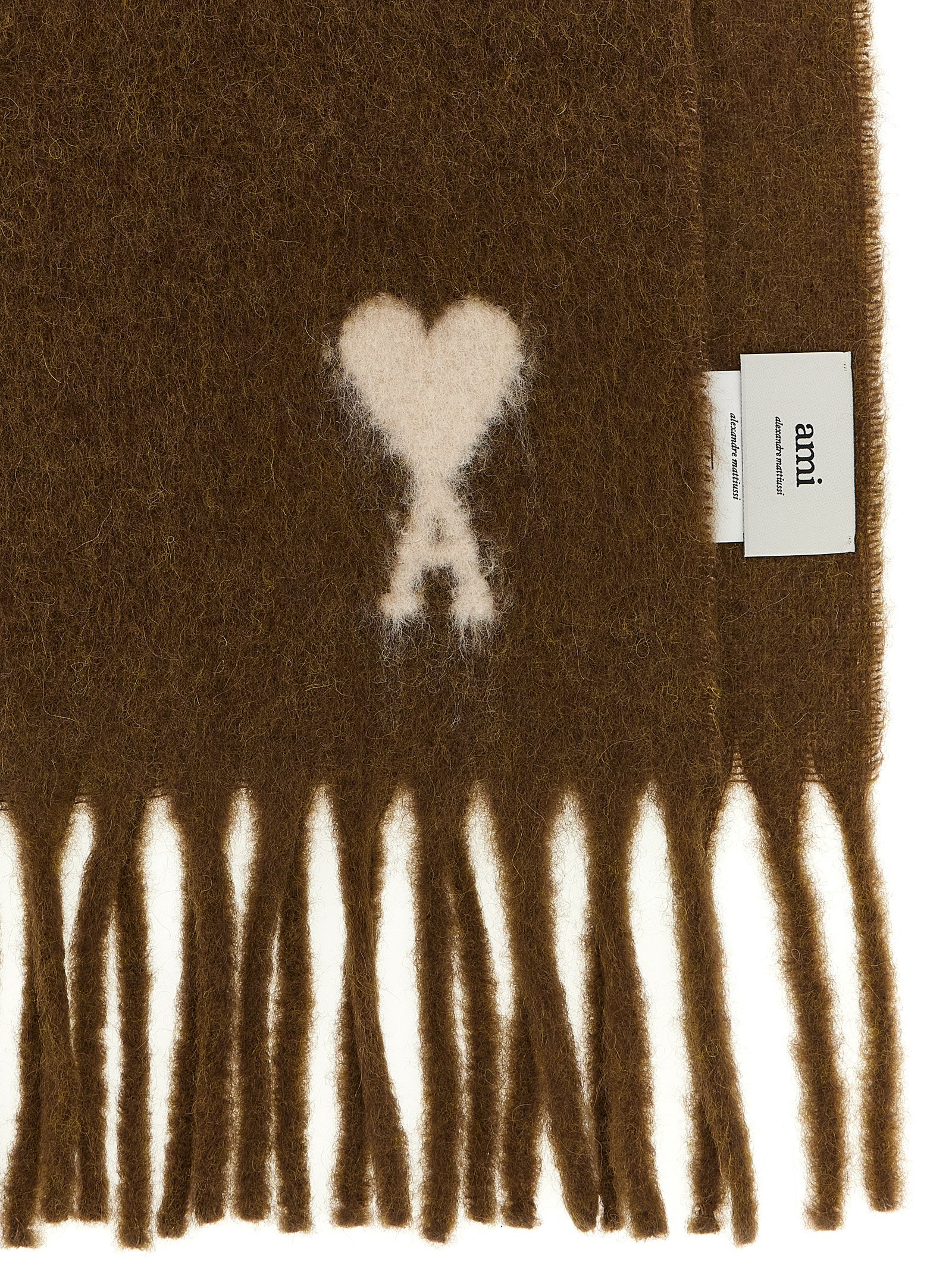 Alpaca scarf with contrast jacquard ‘Ami De Coeur’ intarsia and fringed edges.