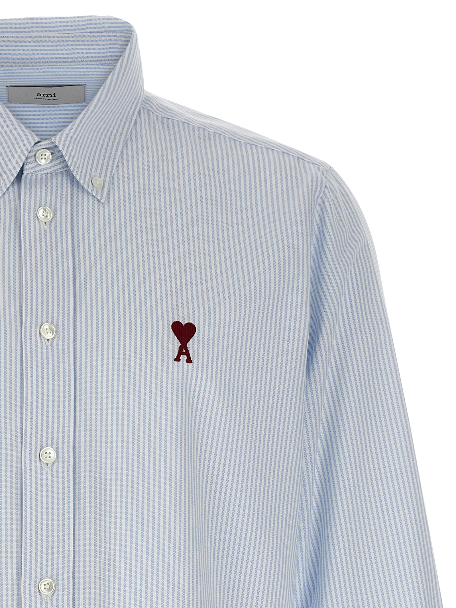 Oxford striped cotton shirt, front ‘Ami De Coeur’ embroidery, button down model, button closure, long cuffed sleeves.