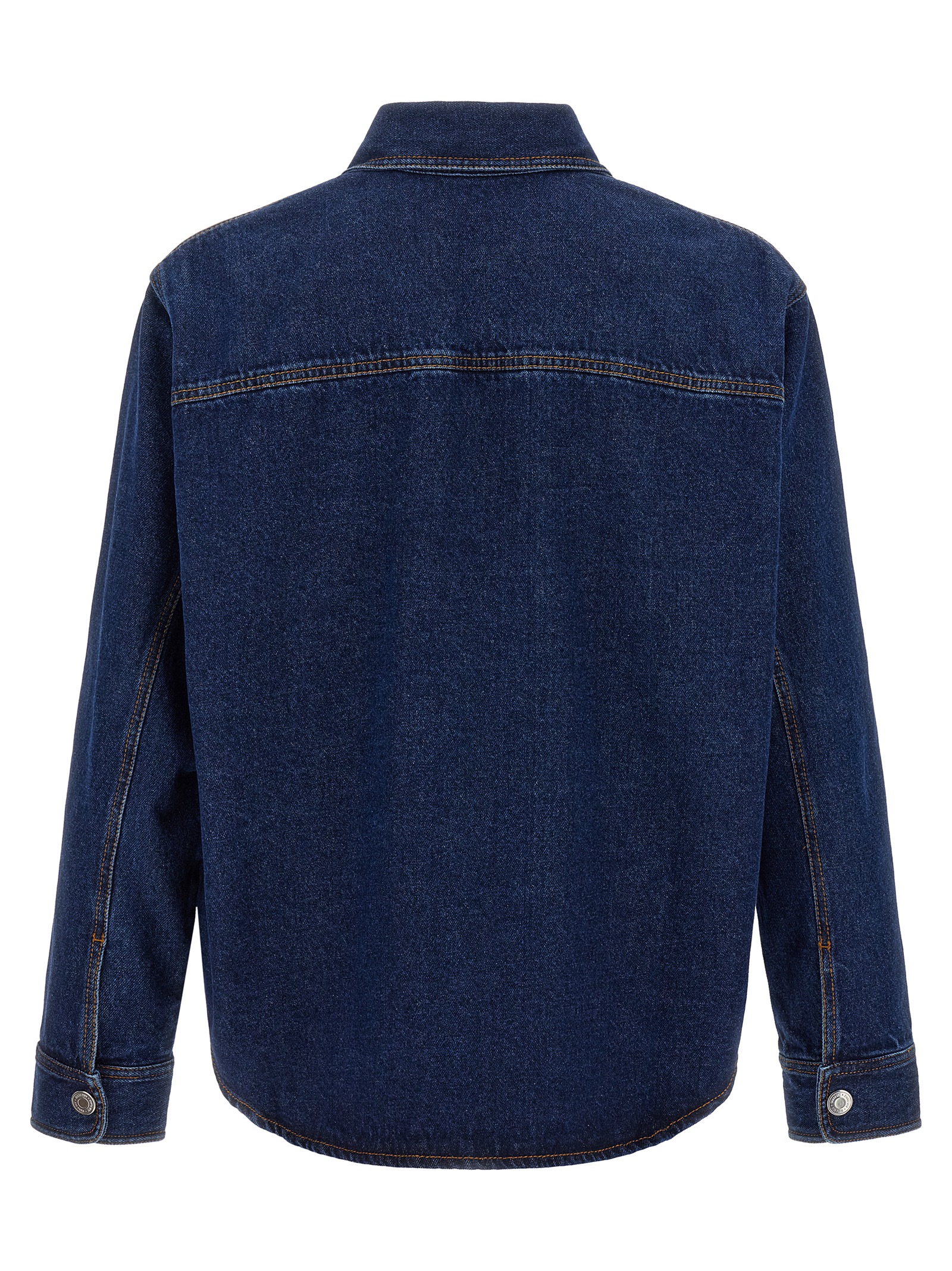 Cotton denim shirt with contrast stitching, breast pocket with ‘Ami De Coeur’ embroidery, front snap button closure, long cuffed sleeves.