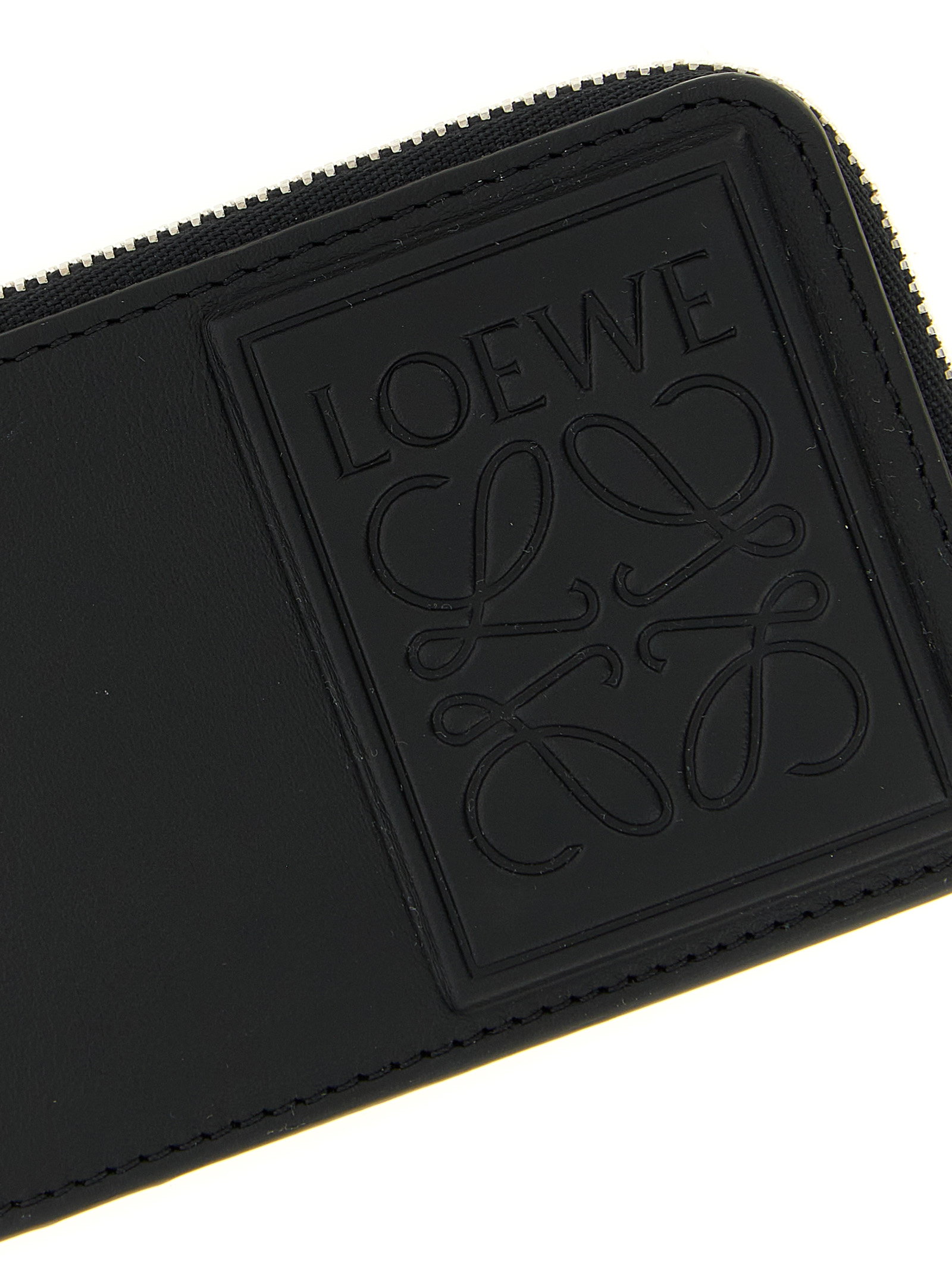 Satin calfskin leather card holder, tone-on-tone patch with embossed LOEWE anagram pattern, zip closure.