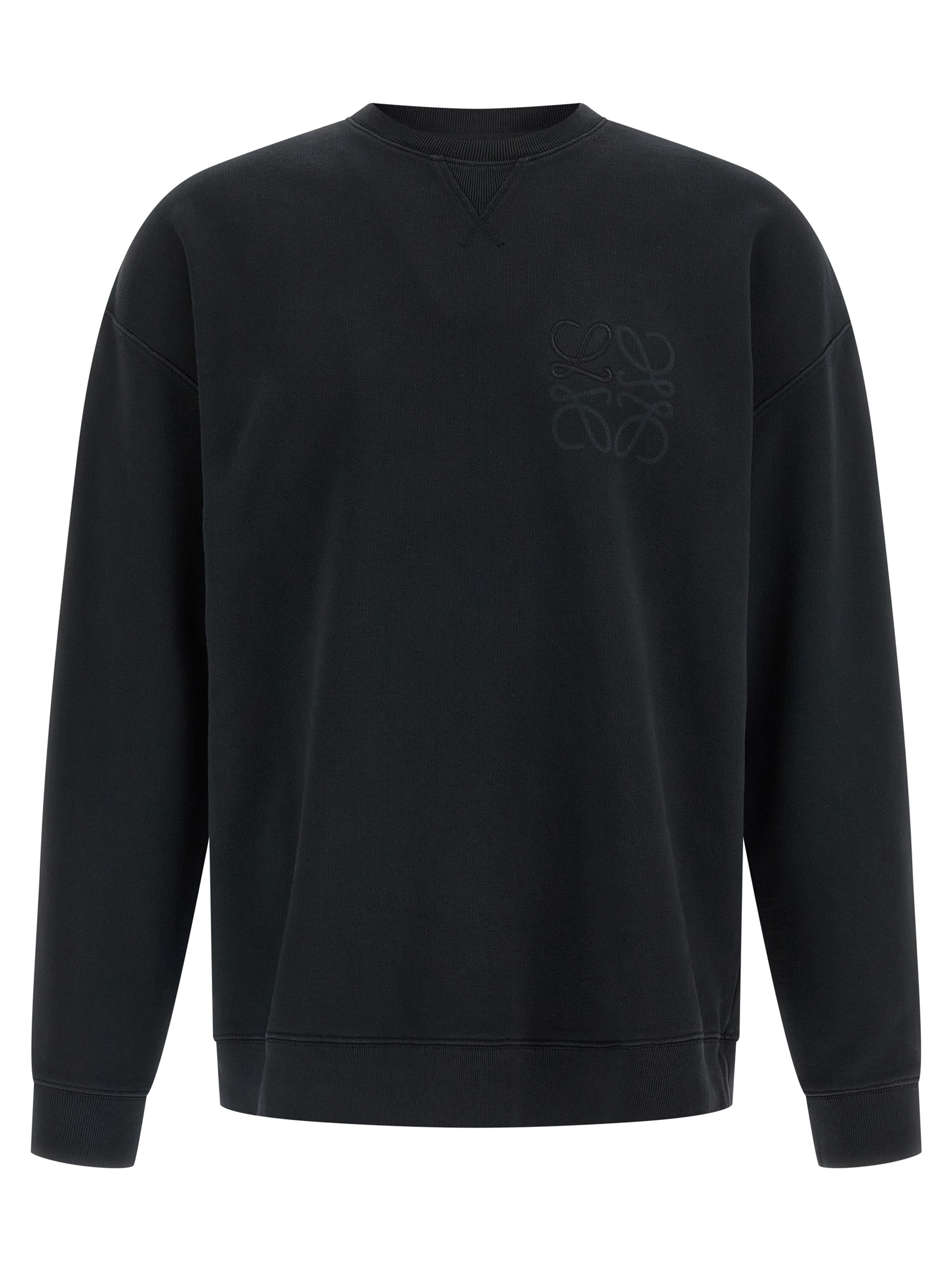 Medium weight loopback cotton sweatshirt, Anagram embroidered and laser printed on the front, crew neck, long sleeves with cuffs and dropped shoulder, and band on the hem.