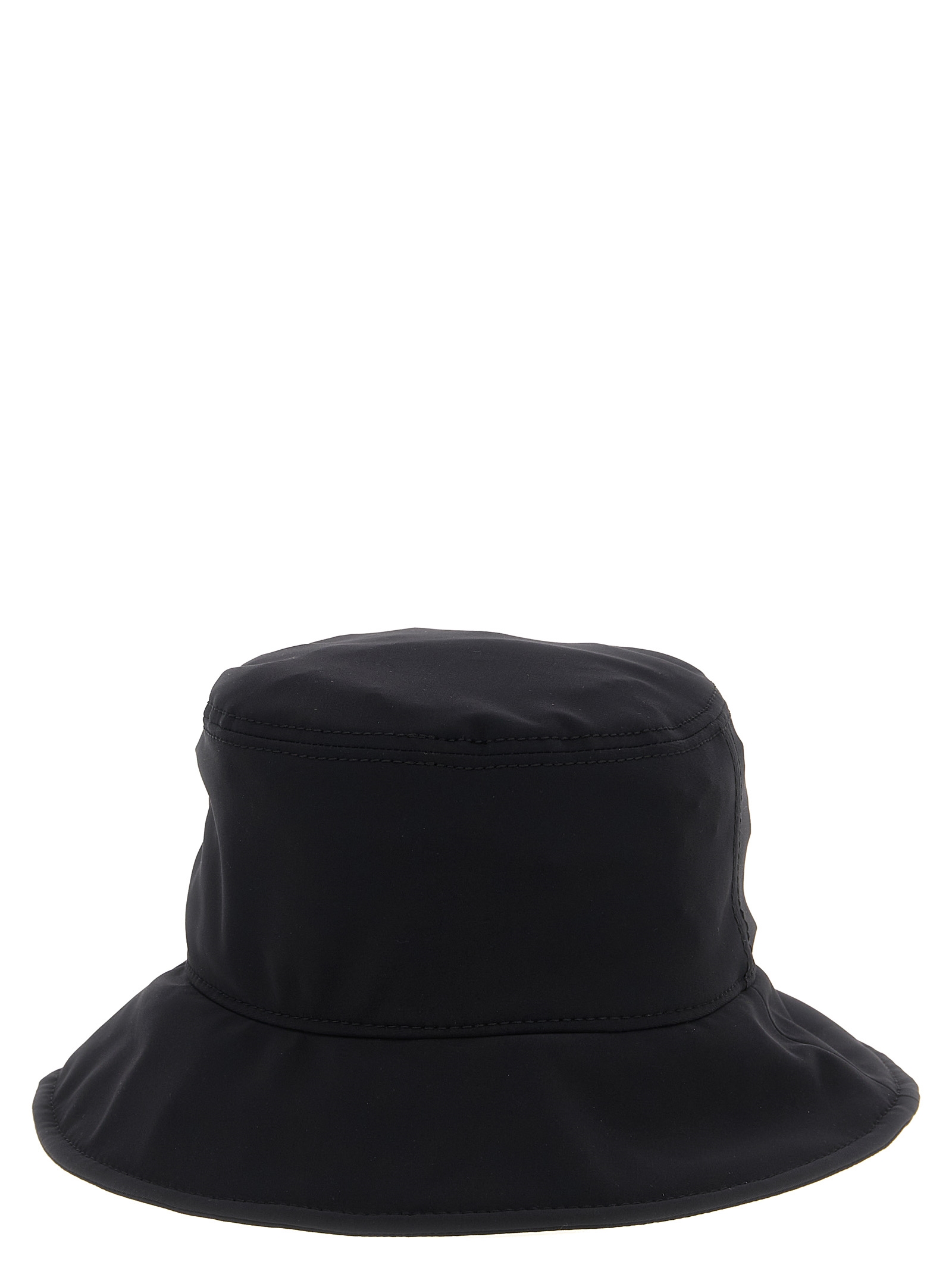 Angele’ bucket hat in waterproof lycra fabric with UV protection, tone-on-tone metal logo appliqué on the front, and side laces in woven stretch fabric.