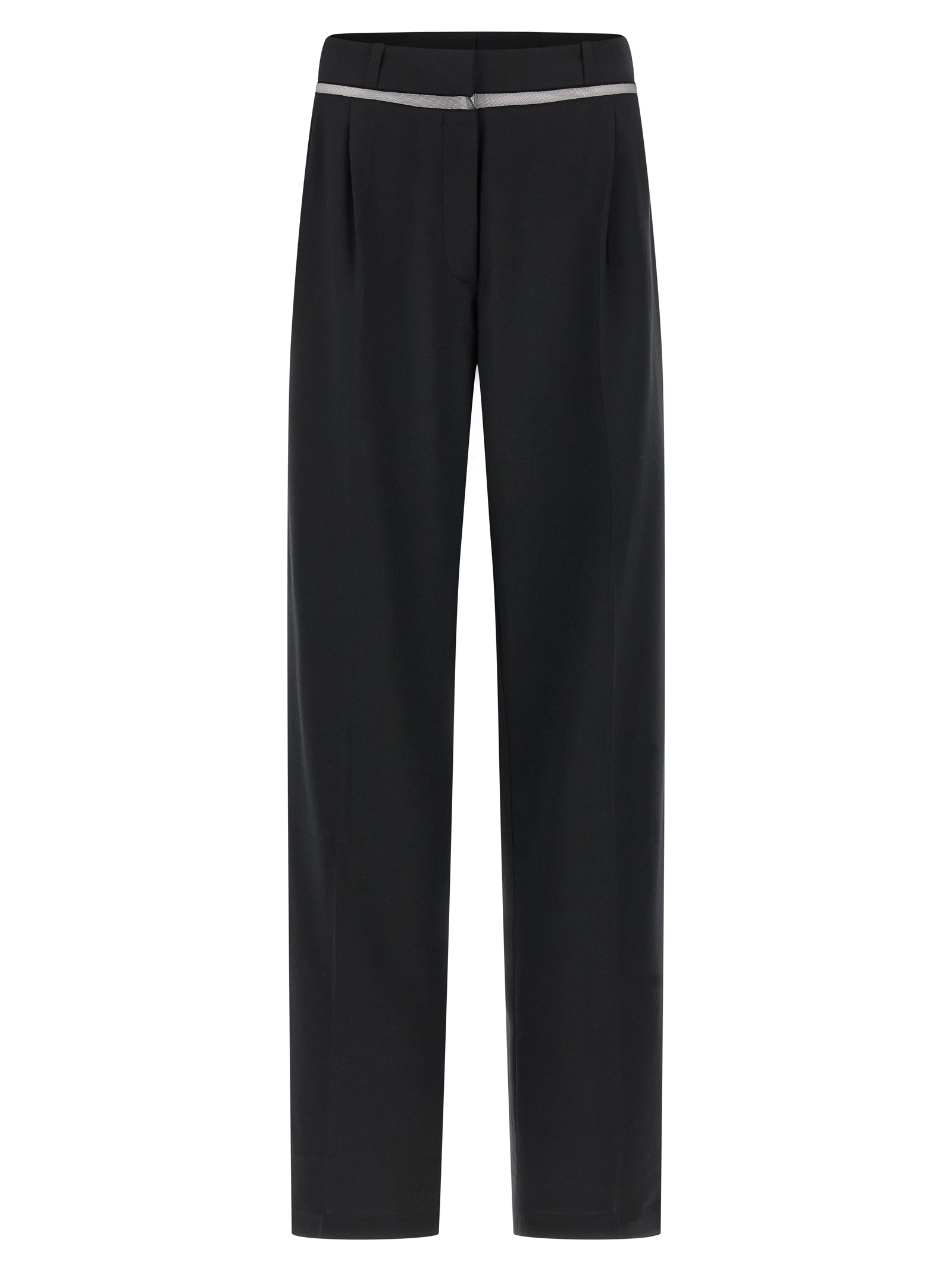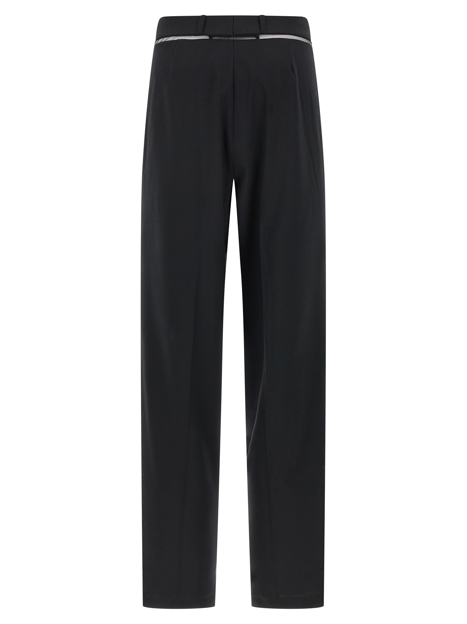 Anouk’ virgin wool blend pants with semi-transparent tulle inserts, pince, stretched pleat, straight leg, zip, hook and front button closure, pockets.
