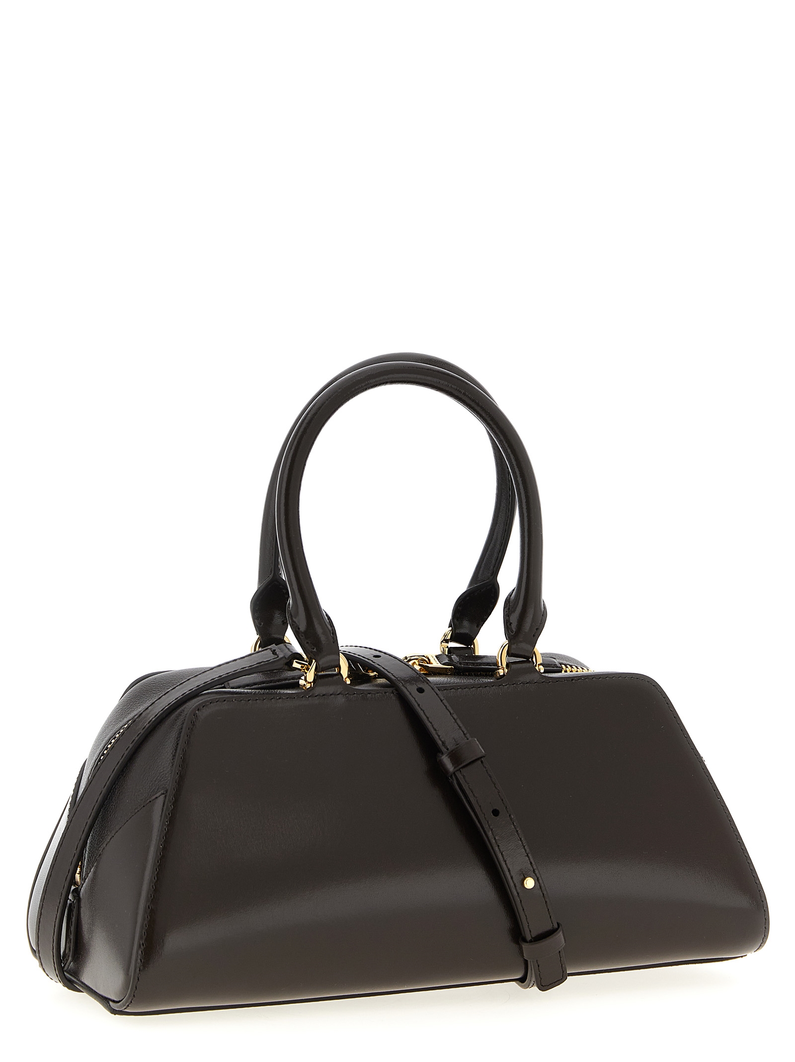 Small ‘Antigona East-West’ Box leather and shiny ‘Antigona Cube’ handbag in long East-West shape with origami style gusset structure, tone-on-tone patch with embossed logo, top zip closure, double fixed handle, adjustable and removable shoulder strap.