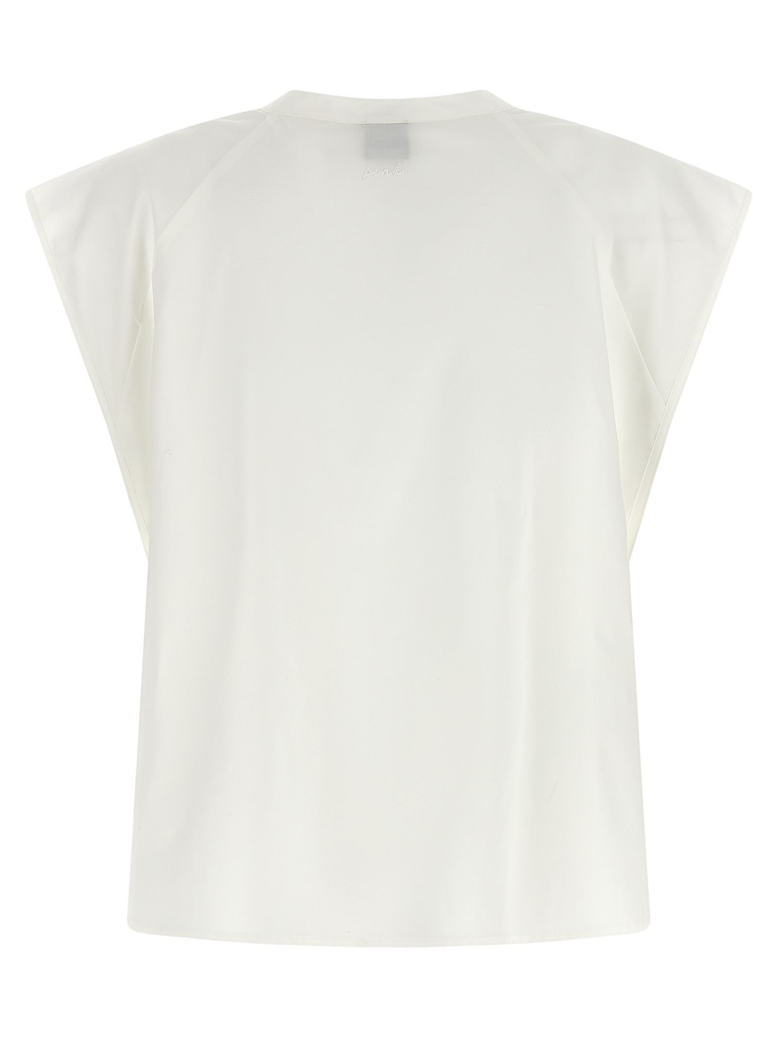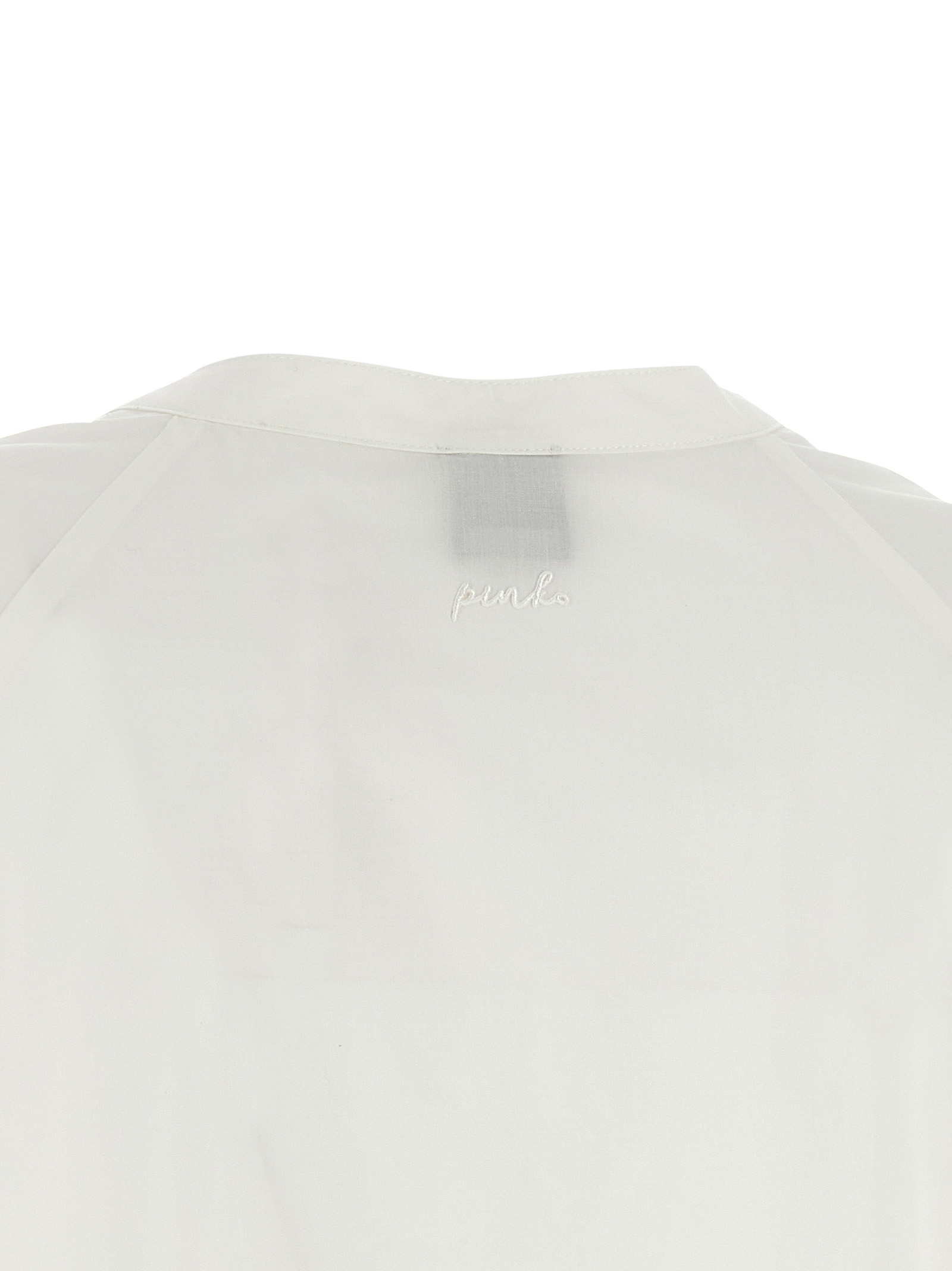 ‘Apecchio’ blouse in light cotton poplin with tone-on-tone logo embroidery at the back, crew neck, front mother-of-pearl button closure, wide armholes, short raglan sleeves with front curls on the seam.