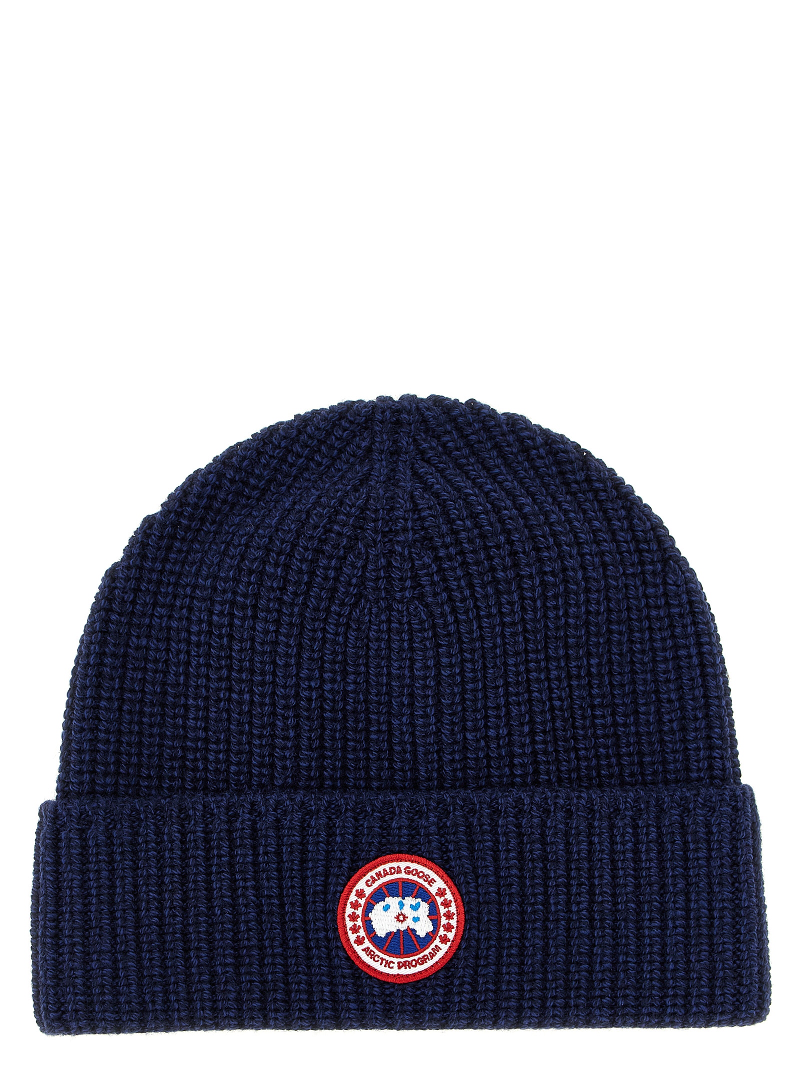Arctic’ middle-weight Merino wool beanie with ribbed knit and turn-up with front logo patch.