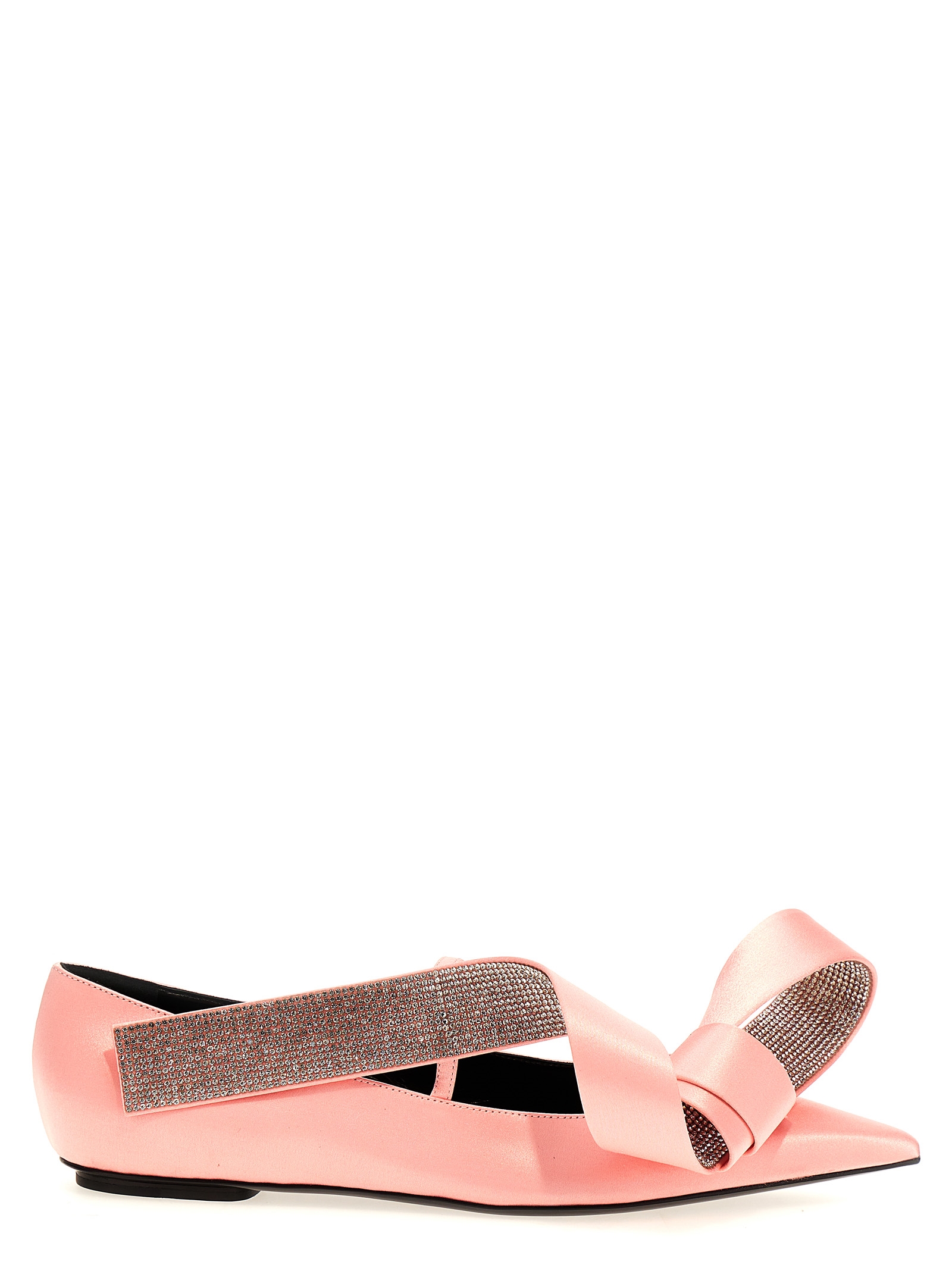 Sergio Rossi x Area Marquise AREA ballet flats in satin with maxi bow and crystals, pointed model.