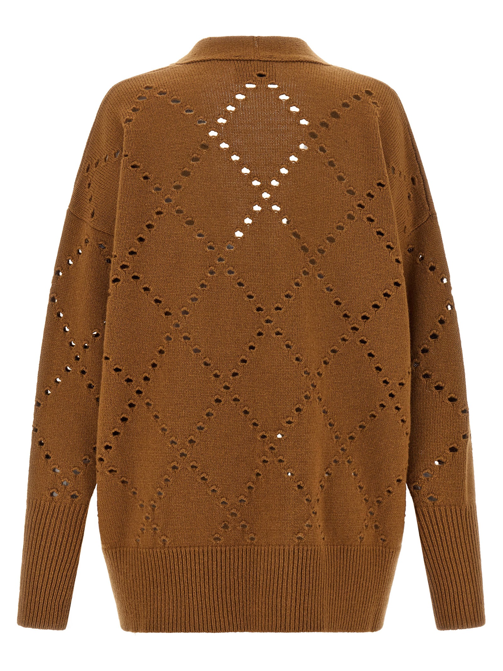 Wool cardigan with all-over Argyle cut-out pattern, V-neck, front button closure, long sleeves with cuffs and dropped shoulders.