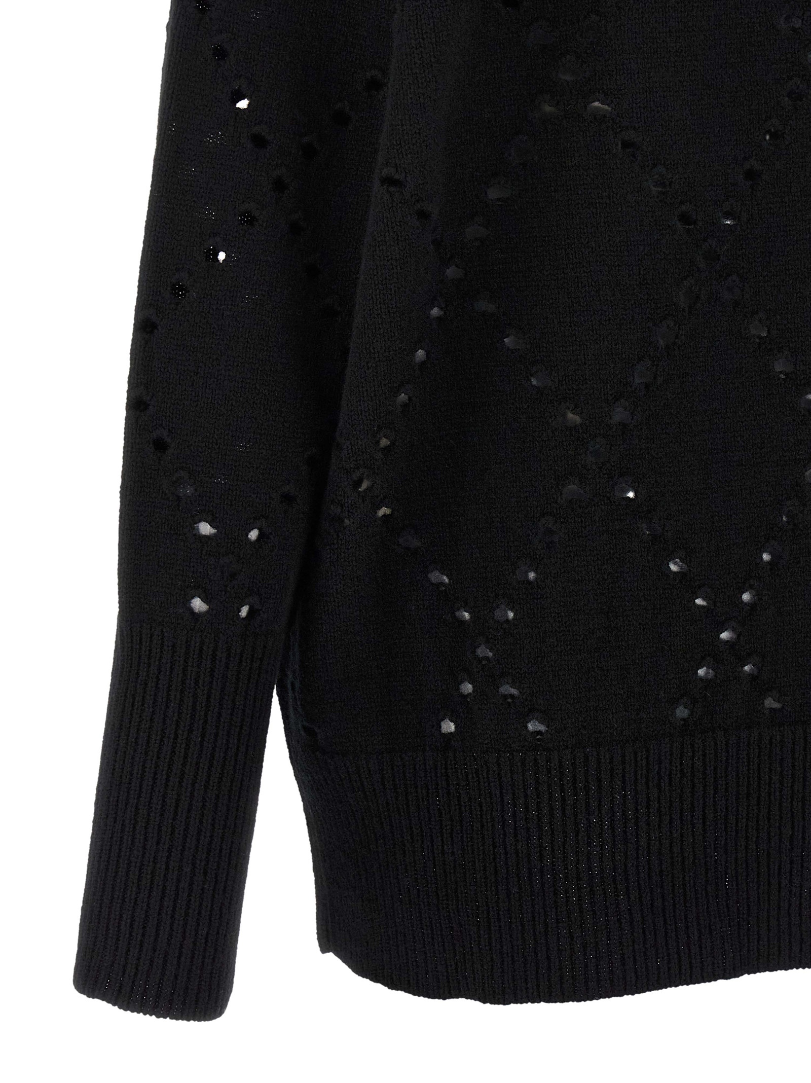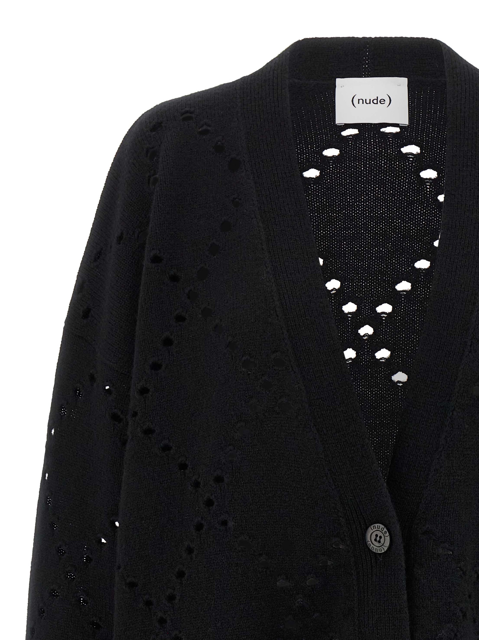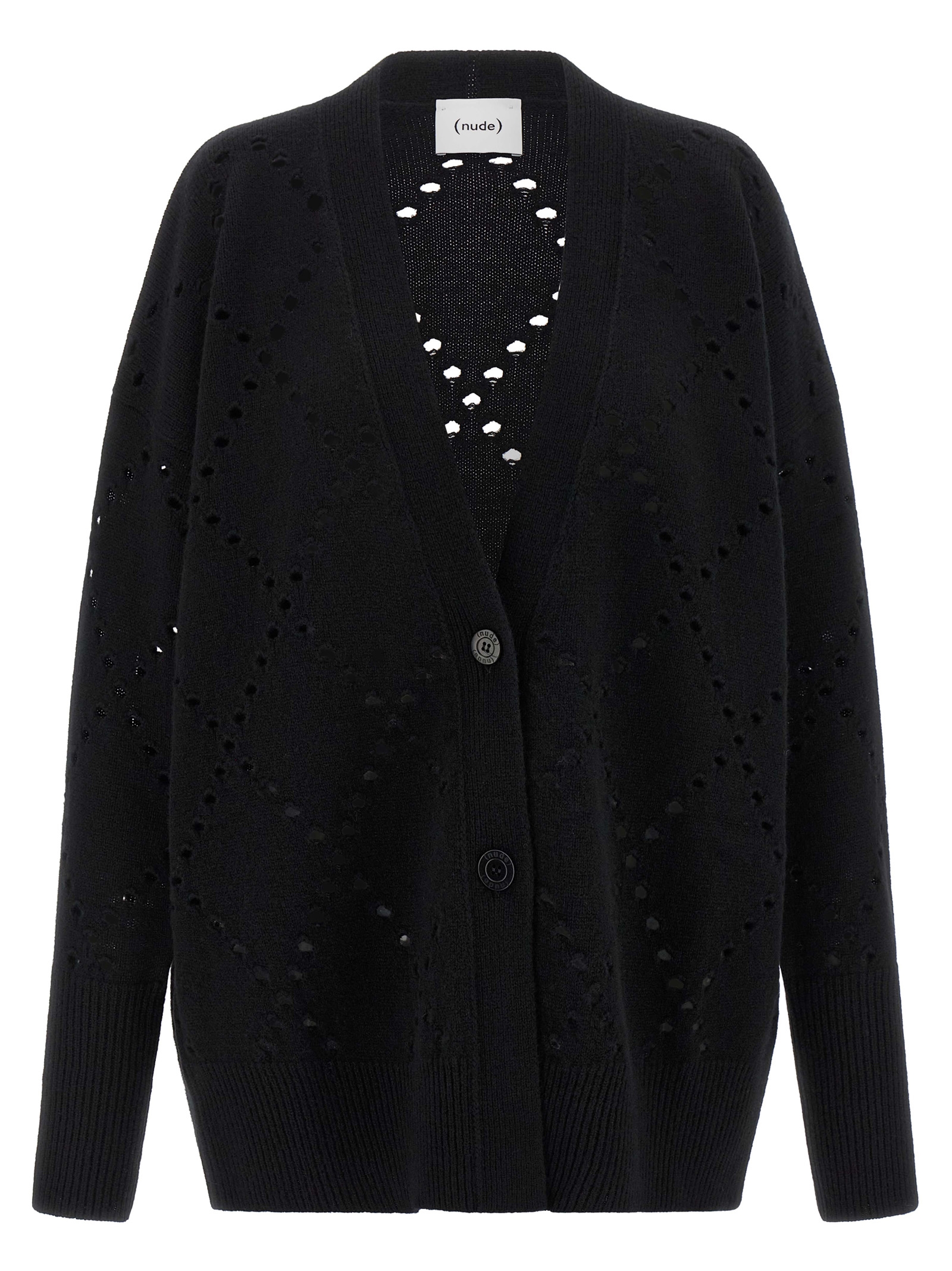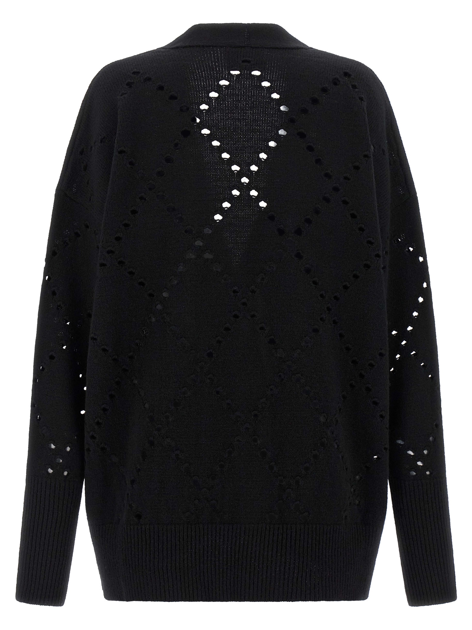 Wool cardigan with all-over Argyle cut-out pattern, V-neck, front button closure, long sleeves with cuffs and dropped shoulders.