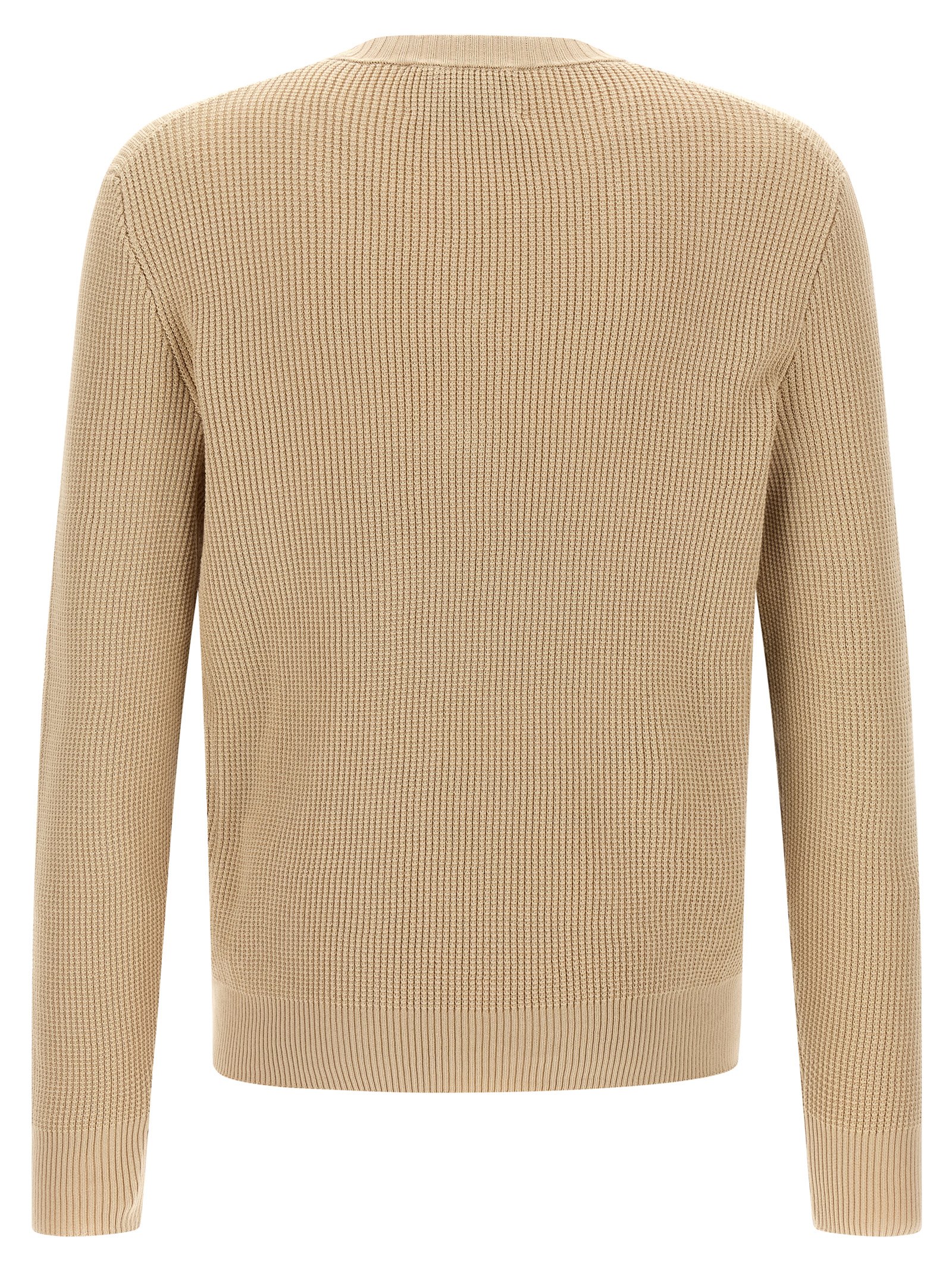 Waffle stitch cotton sweater with front Argyle jacquard pattern, V-neck, long cuffed sleeves.