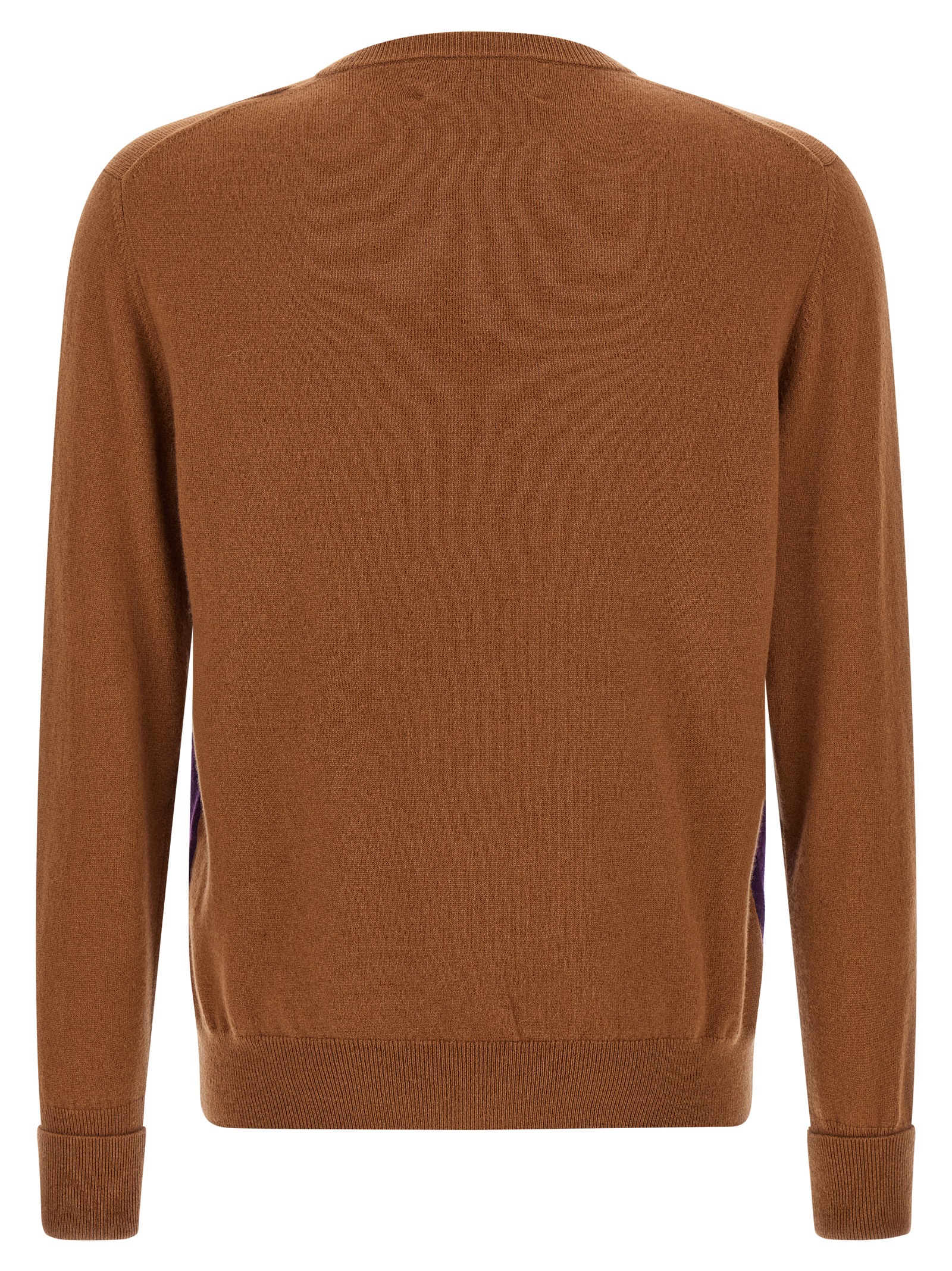 Argyle cashmere sweater, crew neck, long cuffed sleeves.