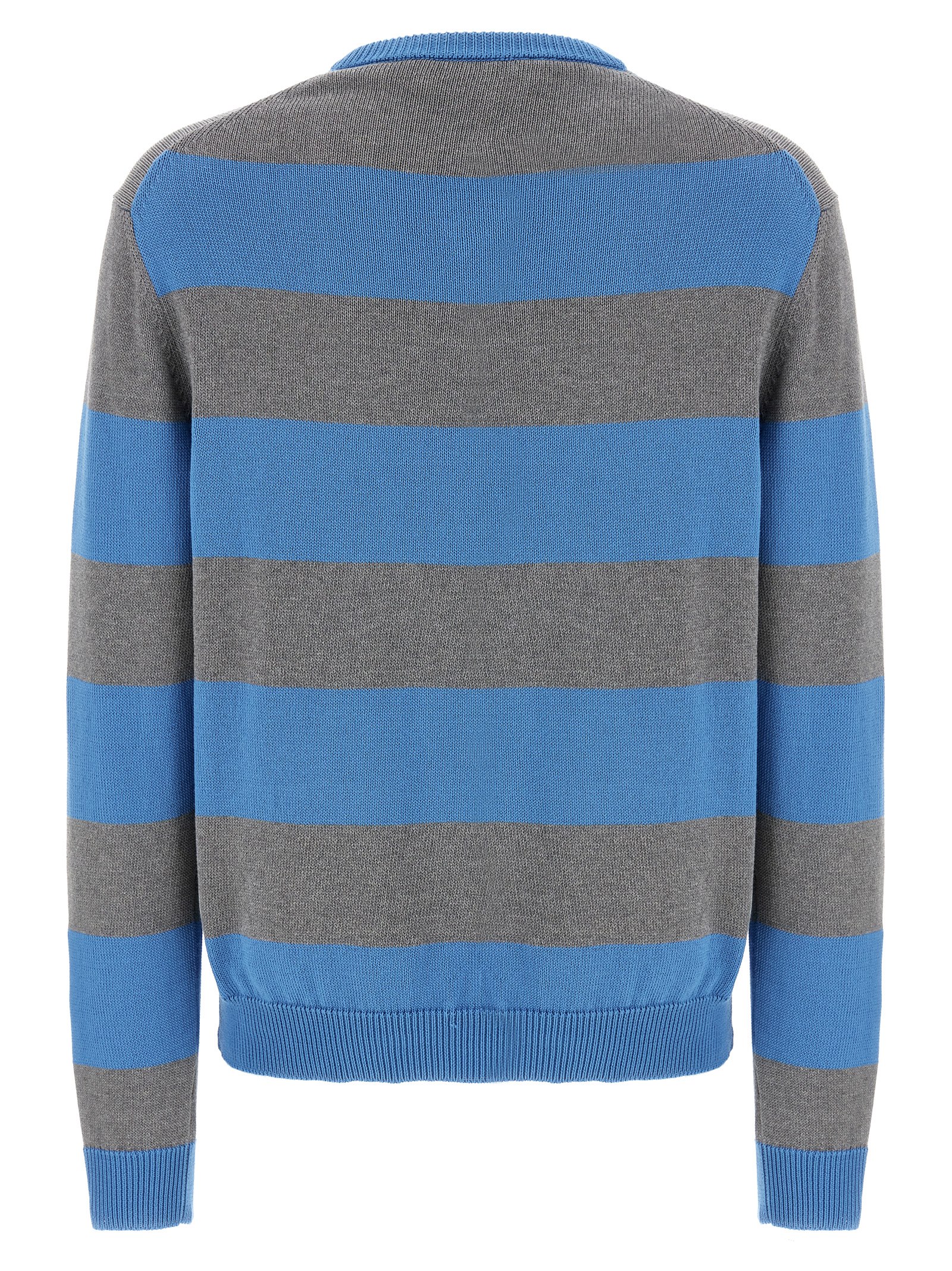 Striped cotton sweater with contrast inlaid ‘Argyle’ pattern on the front, Marni Symbol embroidery on the shoulder, V-neck, long cuffed sleeves.