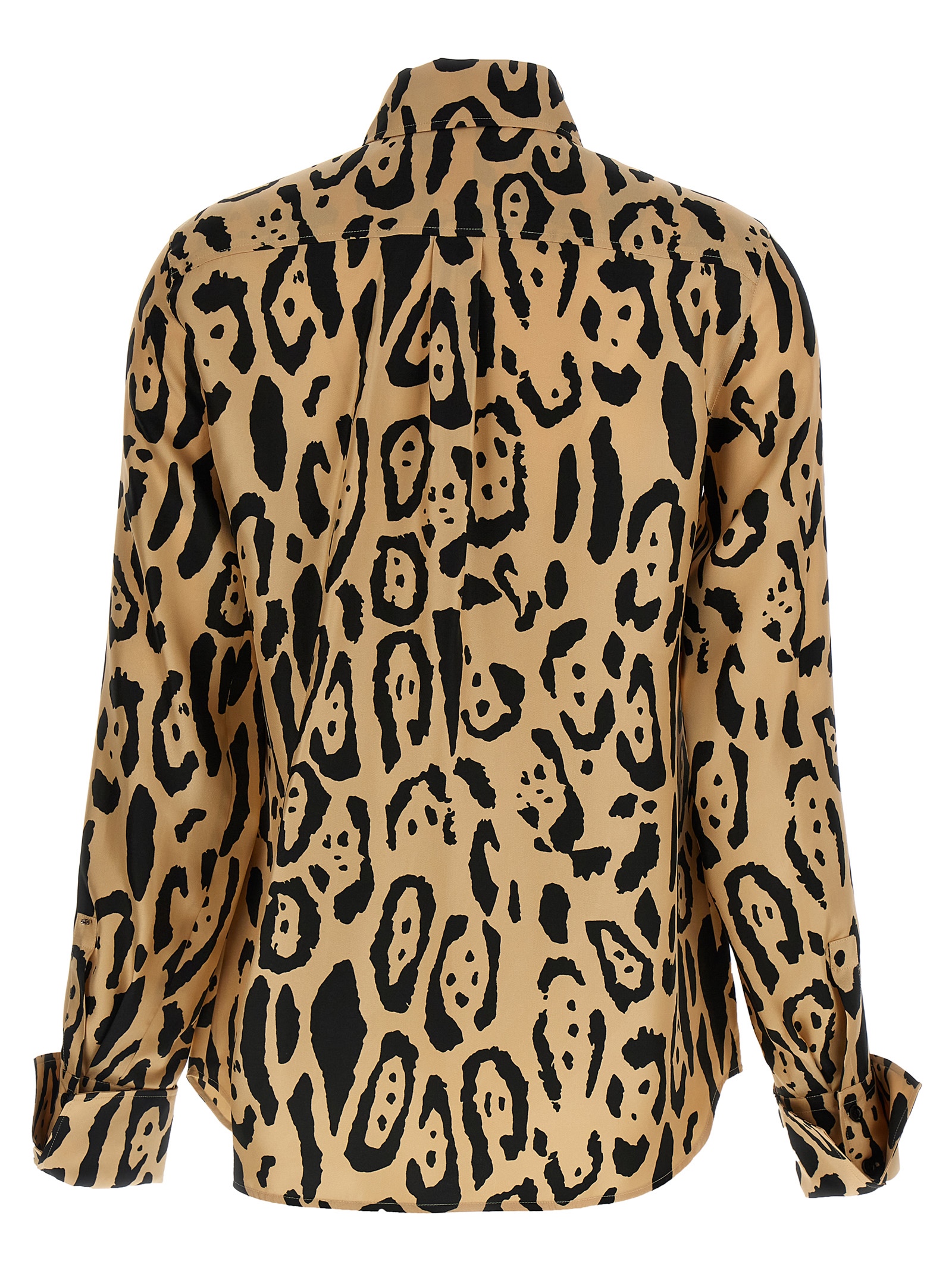‘Armony’ silk twill shirt with animal print, button closure, long cuffed sleeves.