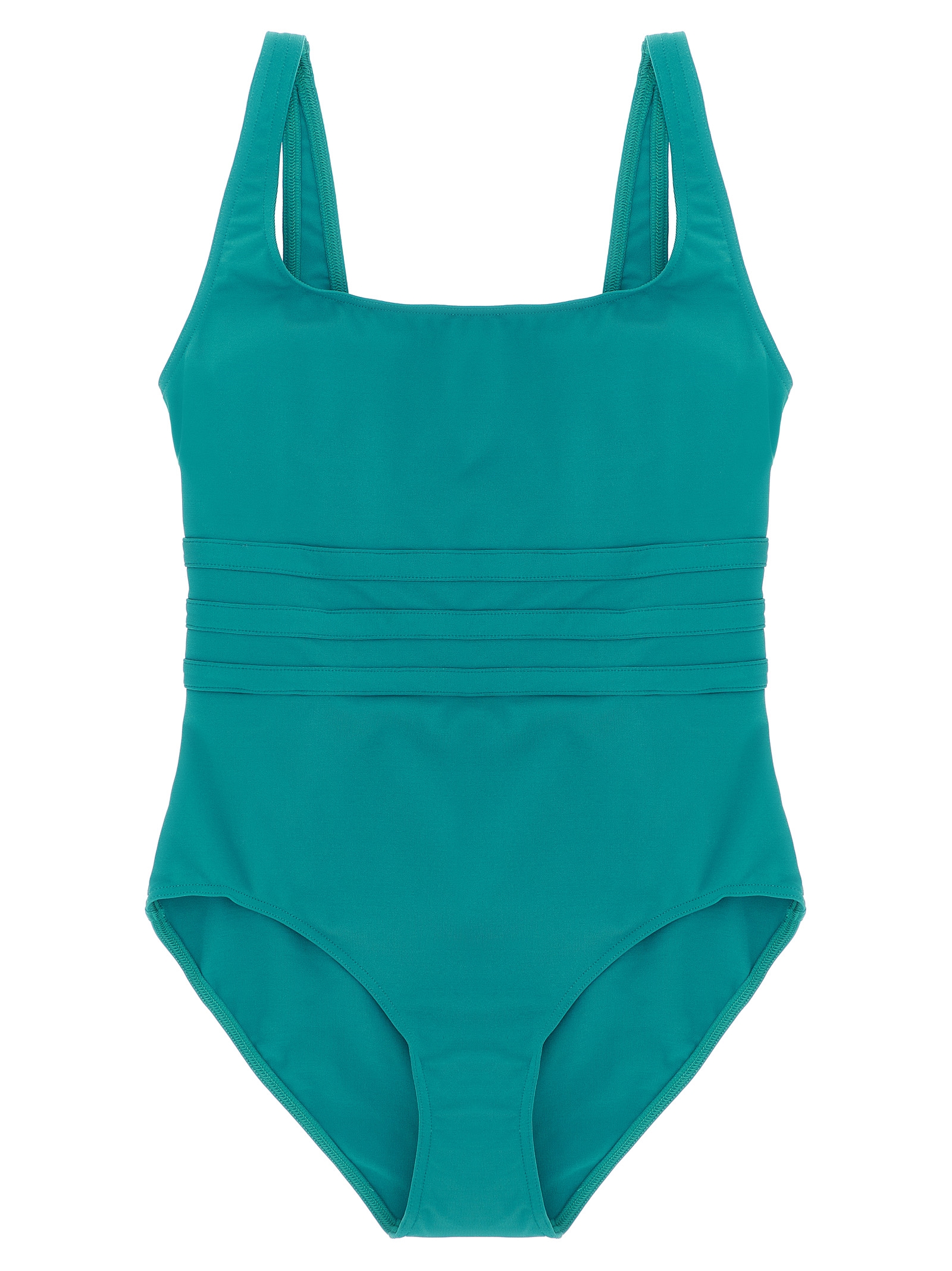 ‘Asia’ one-piece swimsuit in Peau Douce* fabric with wide straps, square neckline at the front, round neckline at the back, and bands at the waist to define the silhouette.